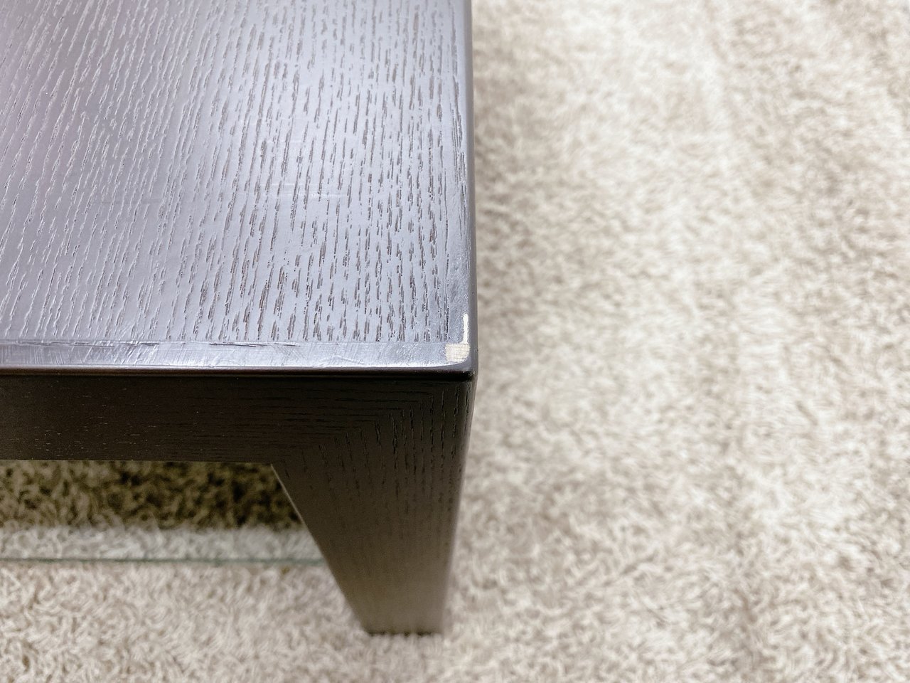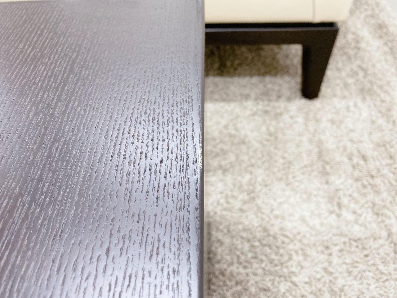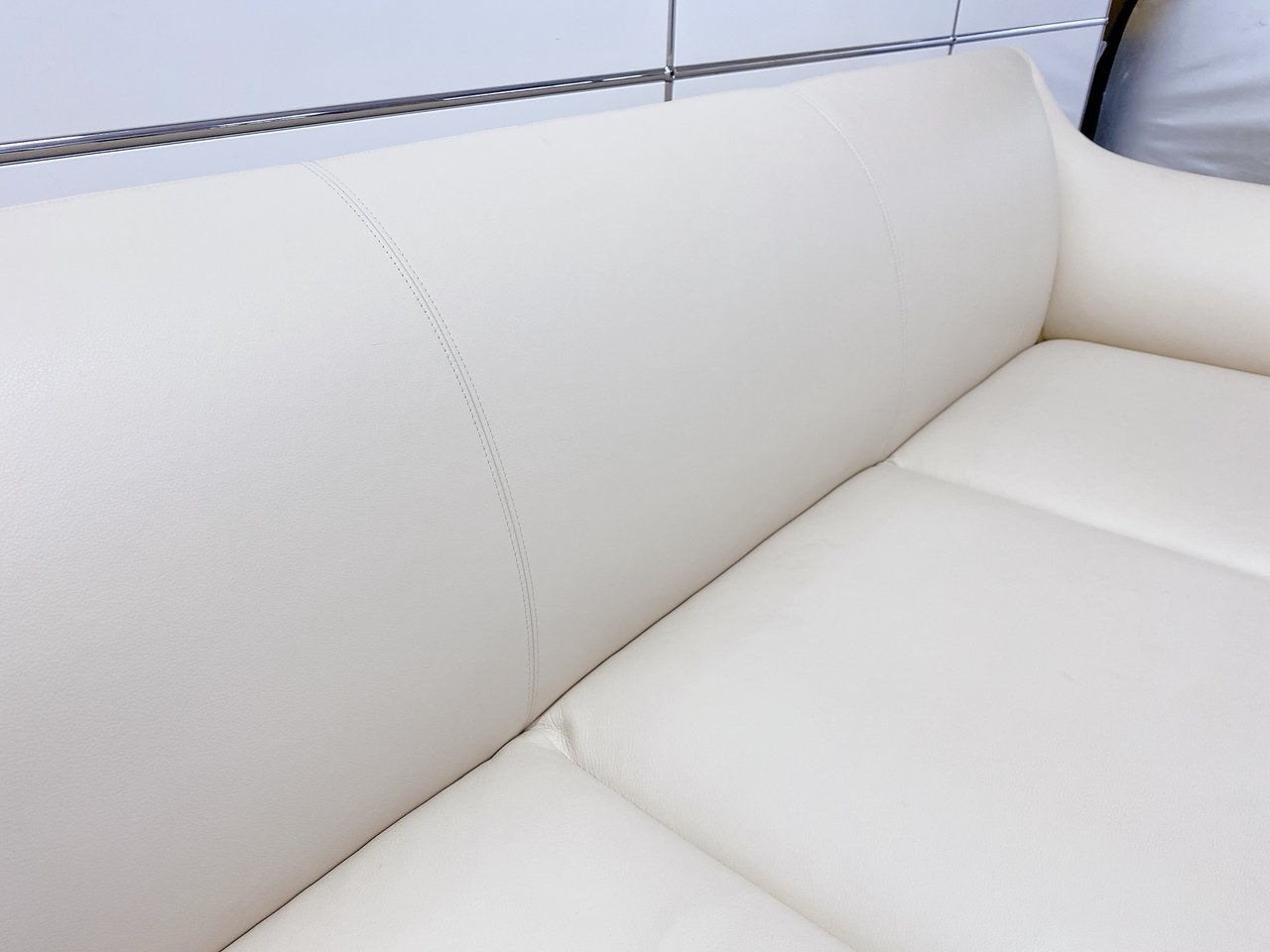 - あり黄ばみ・変色が広い範囲にうっすらある、または濃い黄ばみ・変色が一部ある。(例:三人用ソファ、二人用ソファ、一人用ソファの場合、背もたれ、肘かけ、座面等、 センターテーブルの場合、天板、脚にある。)