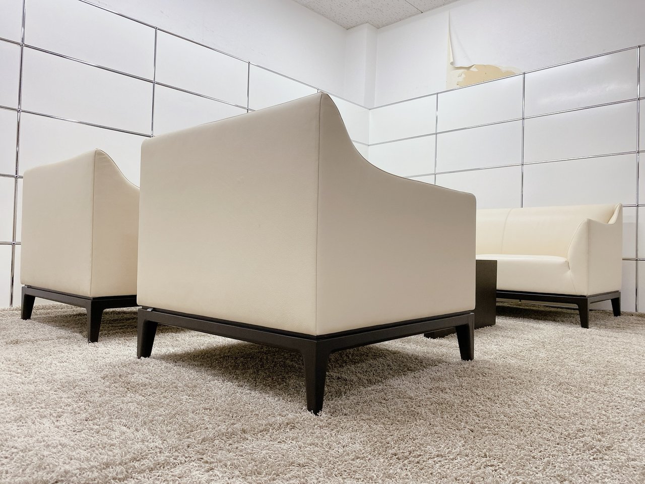 【KS】【新品定価100万越え!】ベージュカラーのオシャレな応接セット■TIME & STYLE / タイム アンド スタイル■革張り■アイボリー- 茨城南店