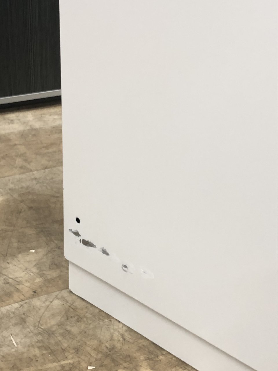 - 目立つ箇所あり傷・凹みが多数、深い傷・凹みが一部ある。(例、天板、正面、背部、サイド部分にある。)