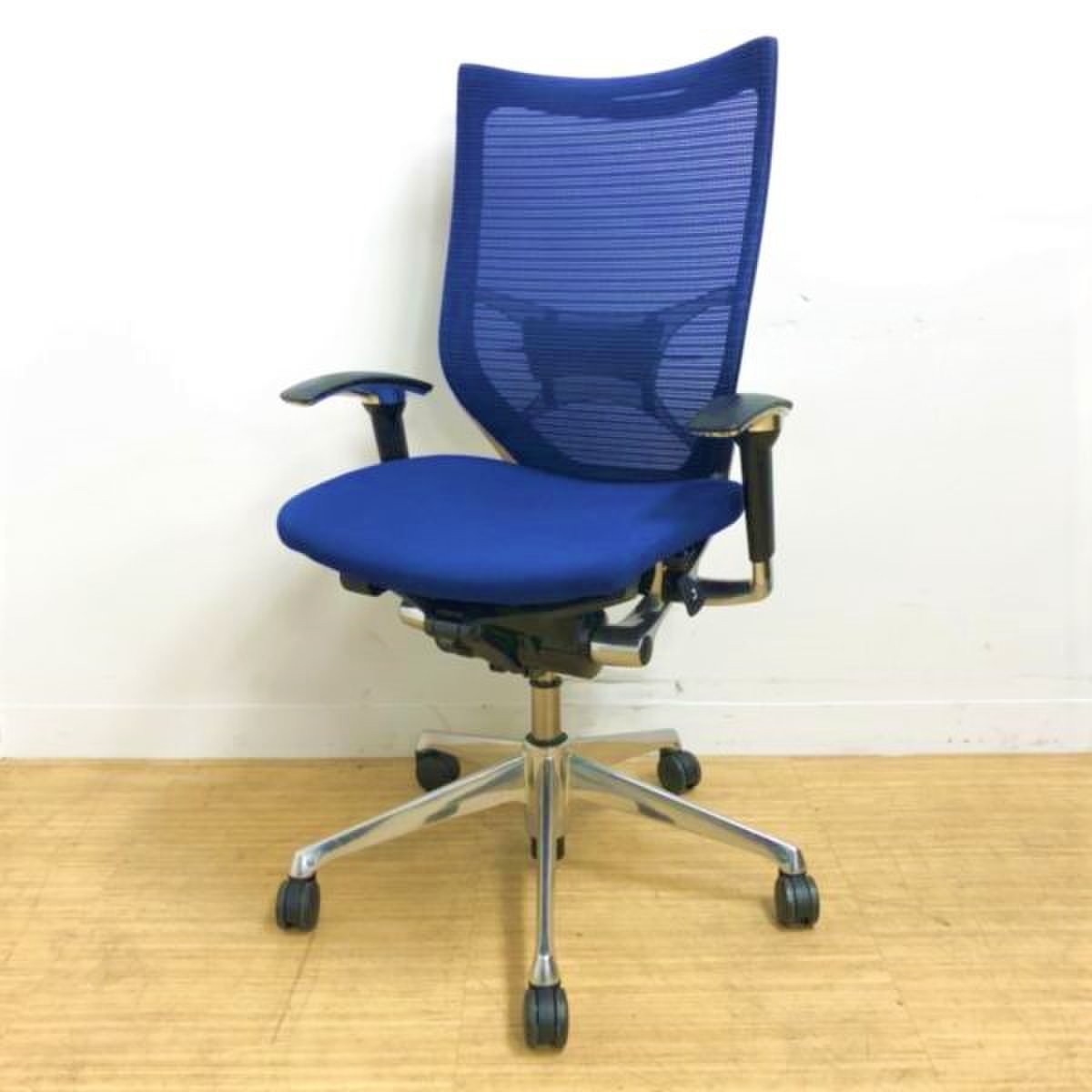 【残り1点売り切り価格】【クレジット決済可】【高機能・超快適みんな大好きバロンチェア】ハイバック・ランバーサポート 可動肘 オカムラ ミディアムブルー- 名古屋千種店