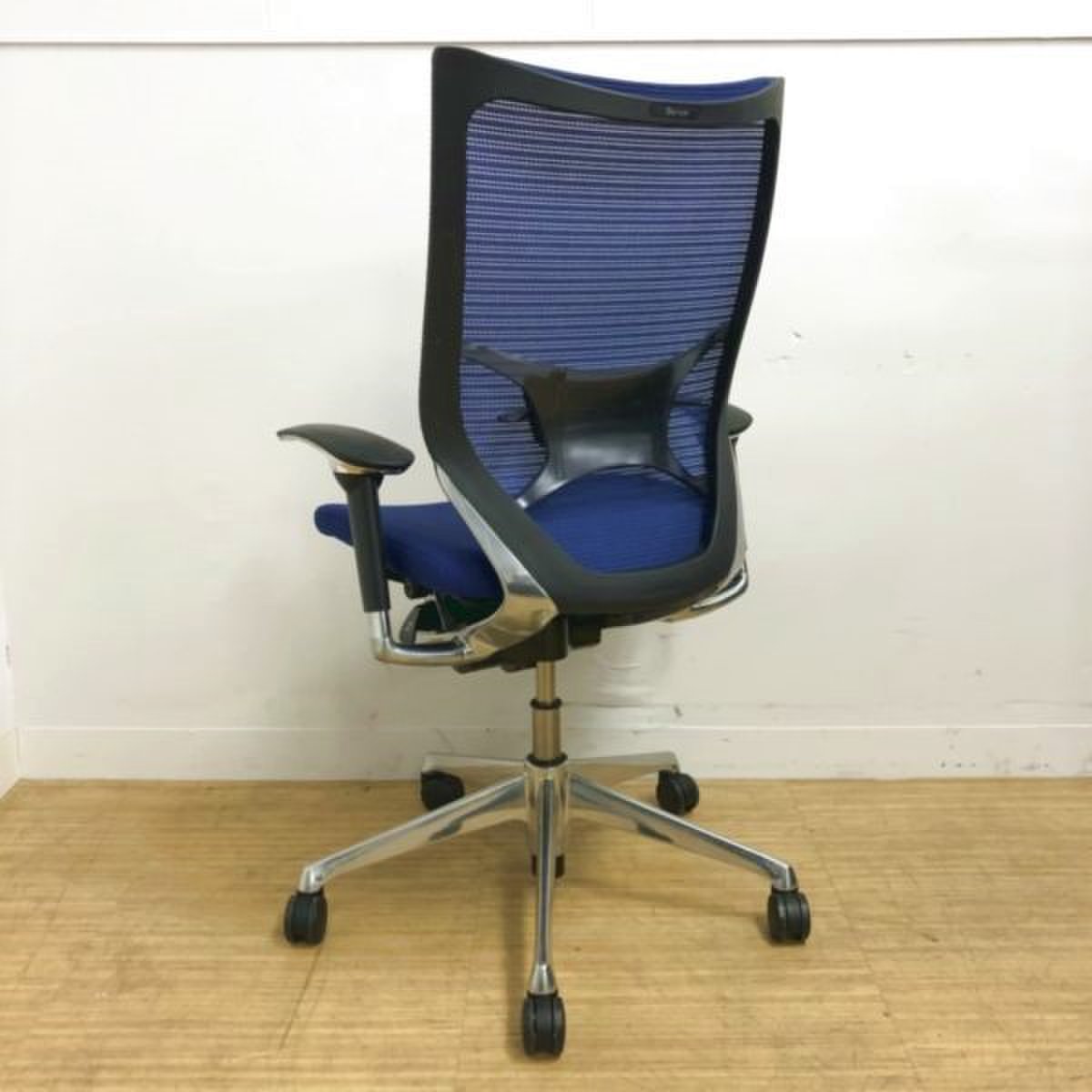 【2脚入荷】【オフィスの執務室、会議室におすすめ!】■オカムラ(okamura)製 バロン(Baron)チェア 肘付き ハイバック 背面メッシュ ■可動肘 ■ダークブルー × ホワイトシェル【硬めの座面が大人気!国産メッシュチェアの代表格!】