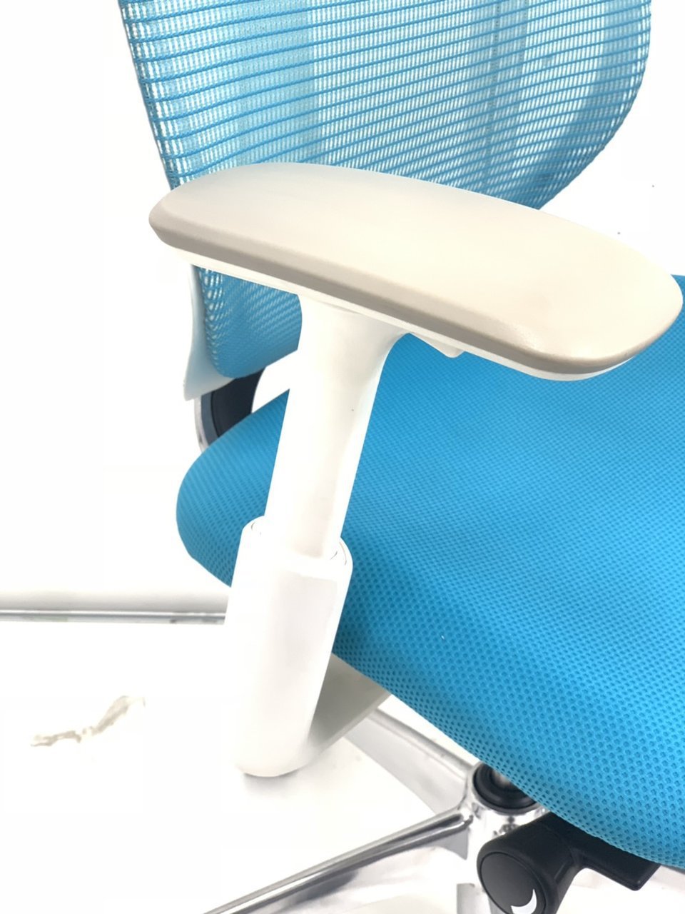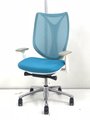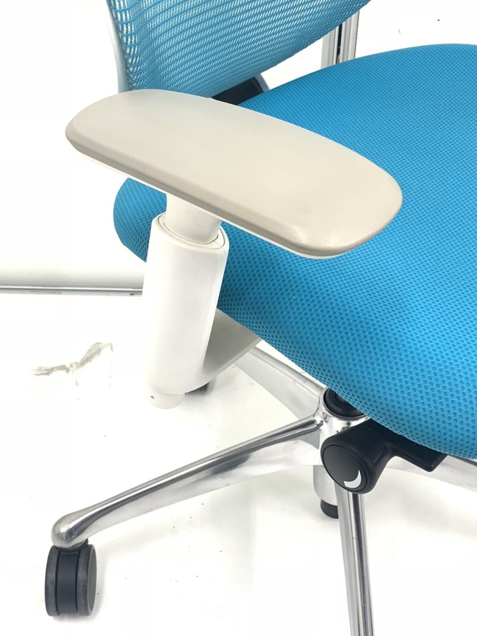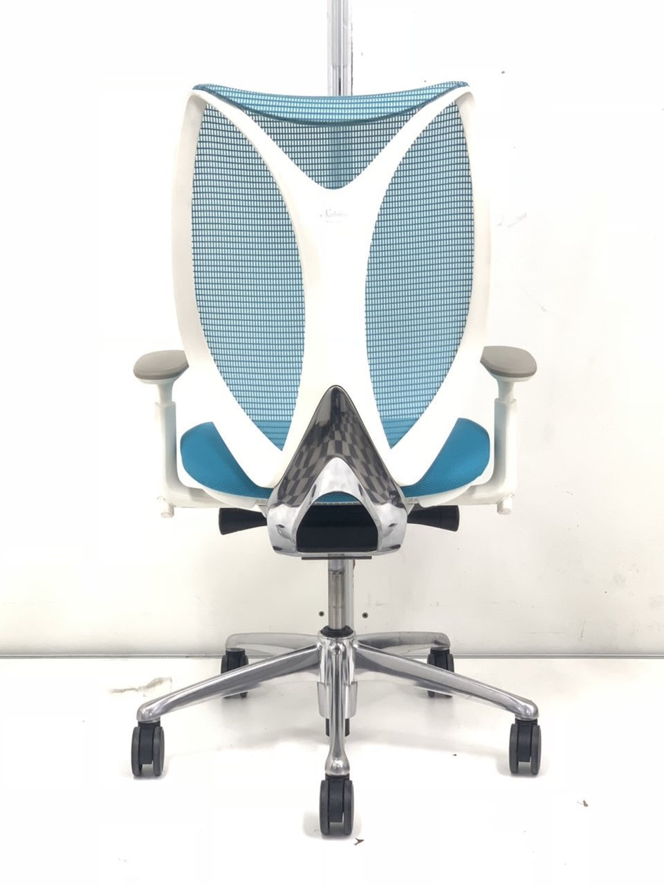 【前傾チルト付!流れるような美しいフォルムの最高級メッシュチェア!】■オカムラ(okamura)製 Sabrina(サブリナ) ハイバック 肘付き ■可動肘 ■背面メッシュ:アクアブルー 座面:ブルー ホワイトフレーム 【座面にダメージがあるためお値下げ商品】