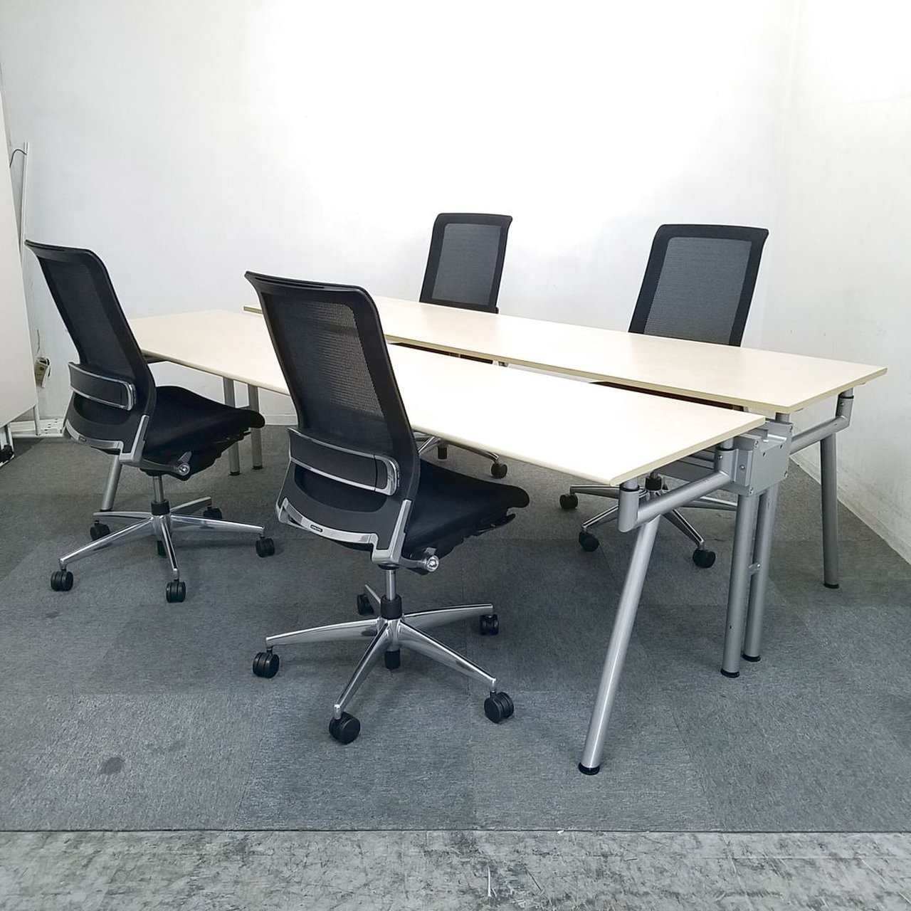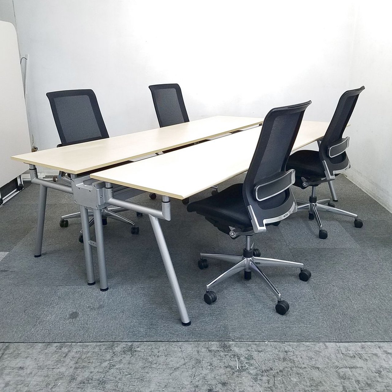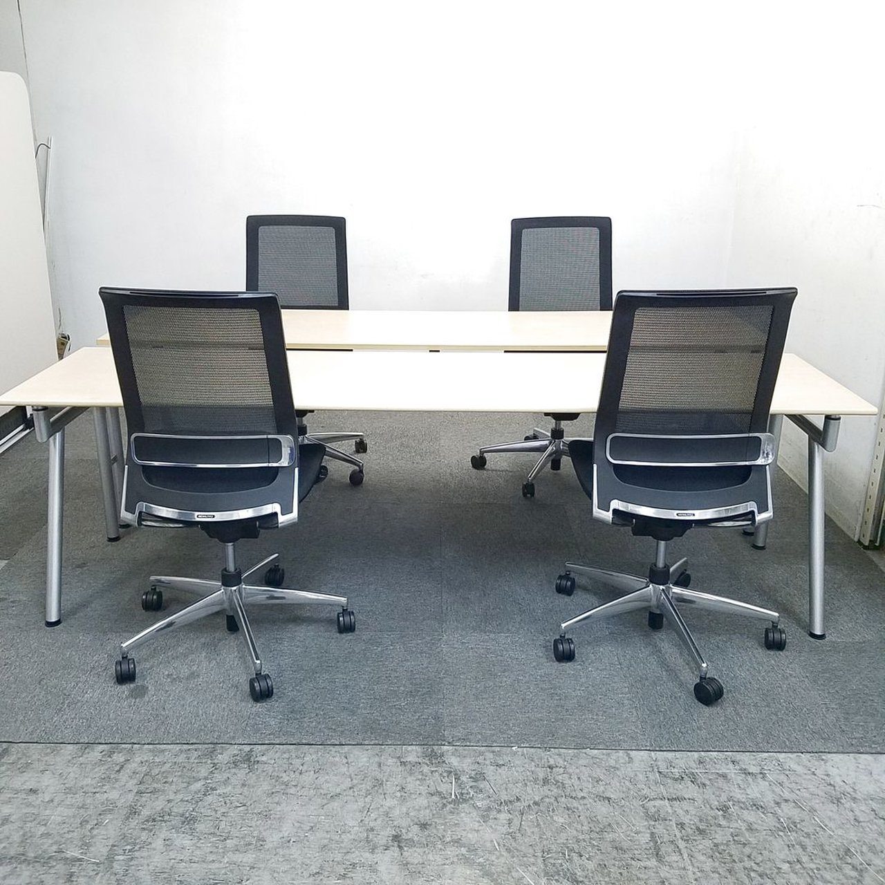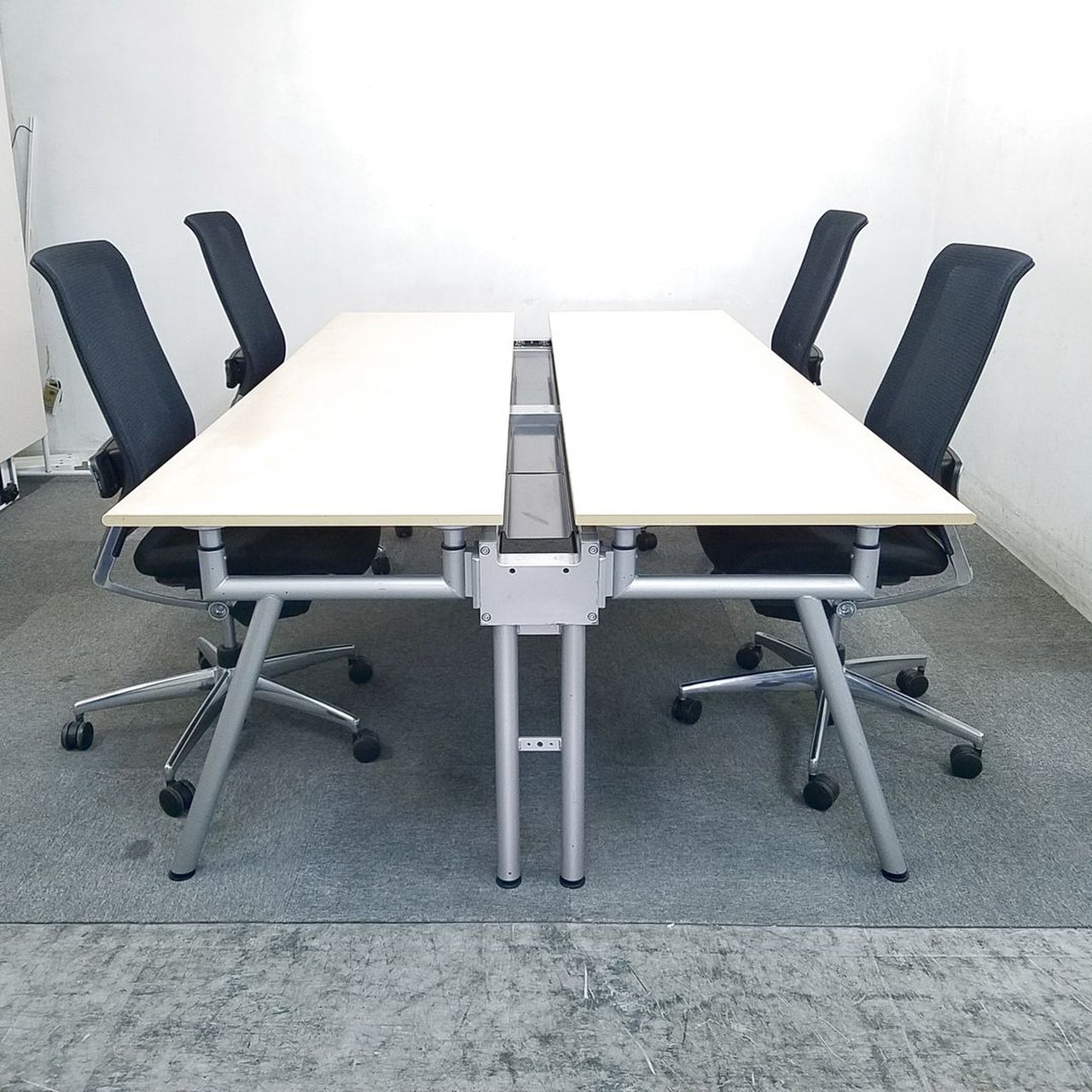 【4名様使用推奨/W2400mm】【フリーアドレスデスク】【おしゃれ】中古 フリーアドレスデスク オフィス テーブル 高級チェア メッシュ- 大阪・堺店