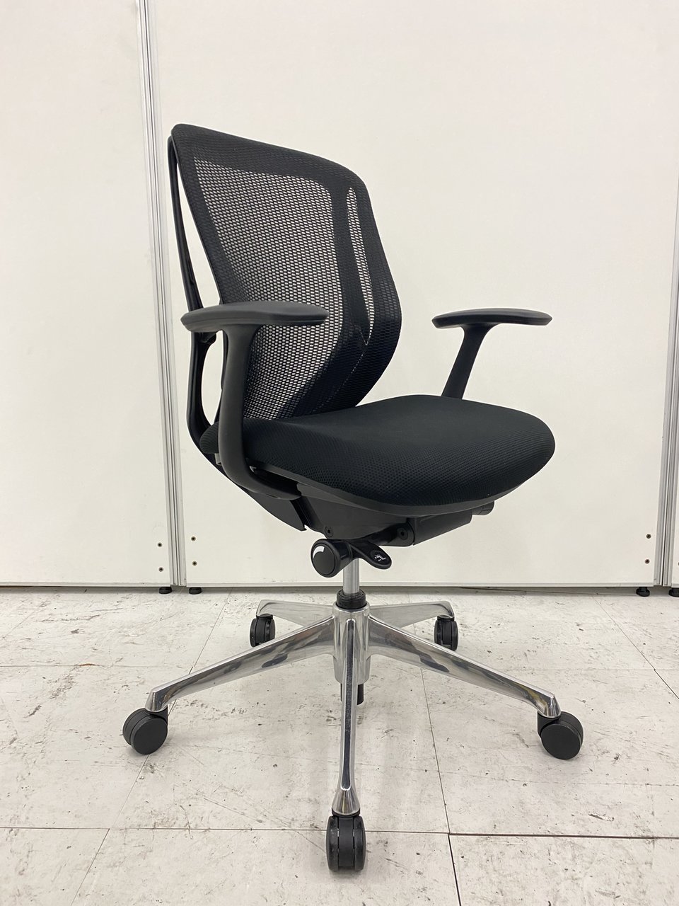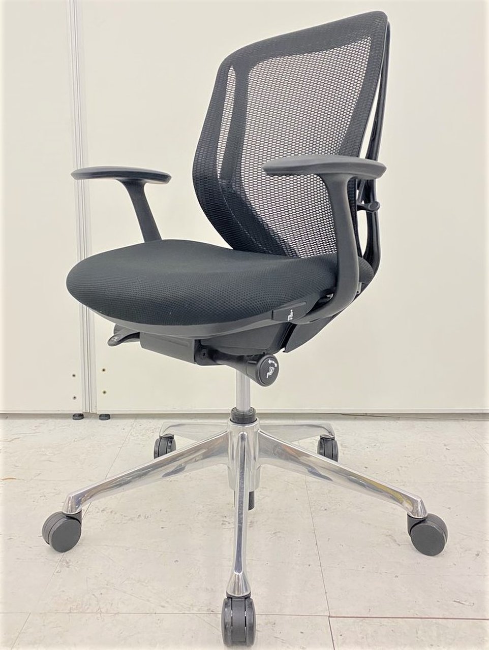 【長時間のデスクワークおすすめ!】■オカムラ シルフィーチェア ブラック ■デザインアーム付 アルミポリッシュ脚- 川崎店