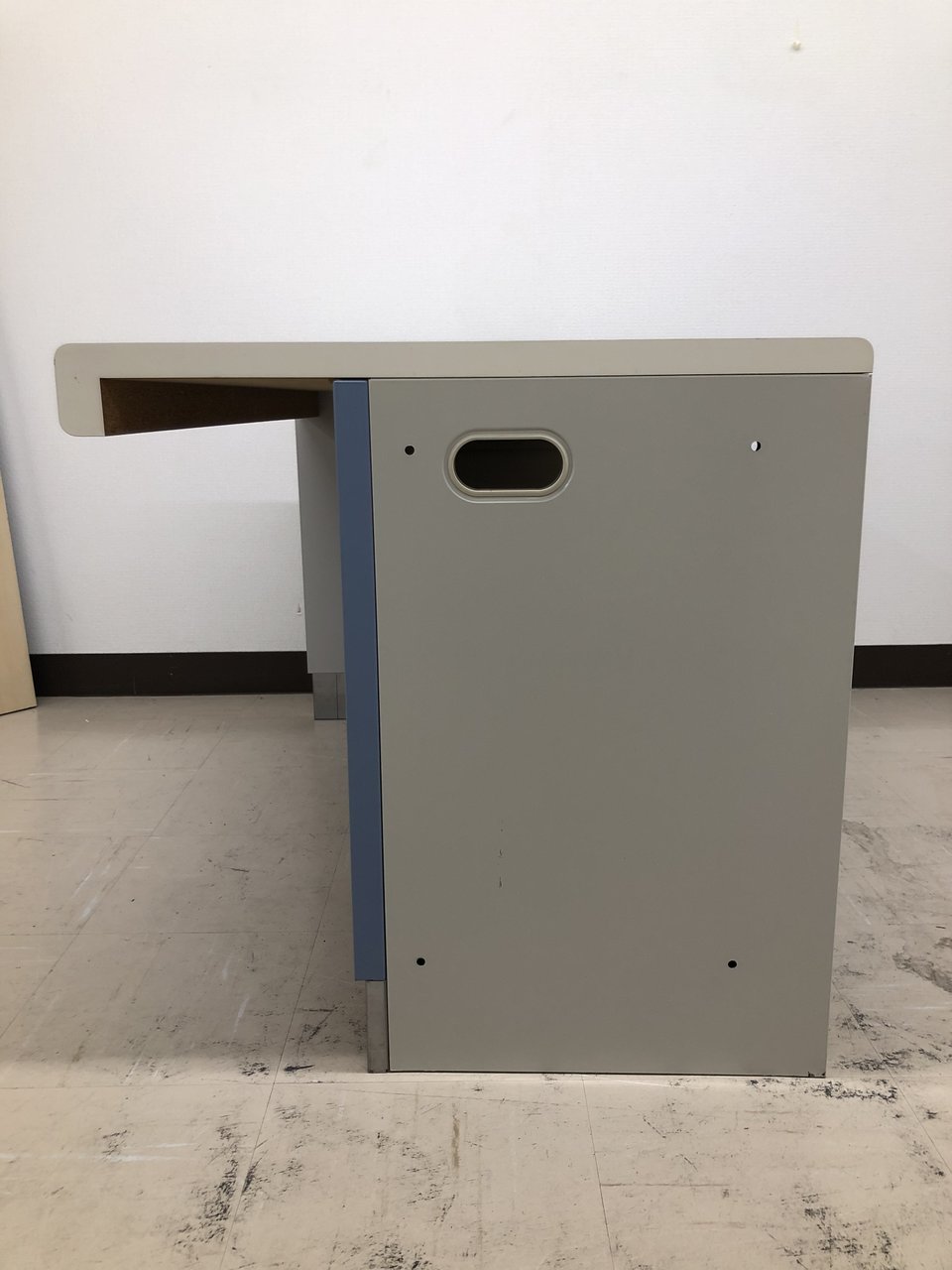 - 一部不具合あり天板歪み、引出開閉不可、アジャスター無し、施錠不可のようにそのカウンターの本来の効用を果たすための機能以外の一部が使用不可な状態。(例、引出が 開閉しづらい等がある。)