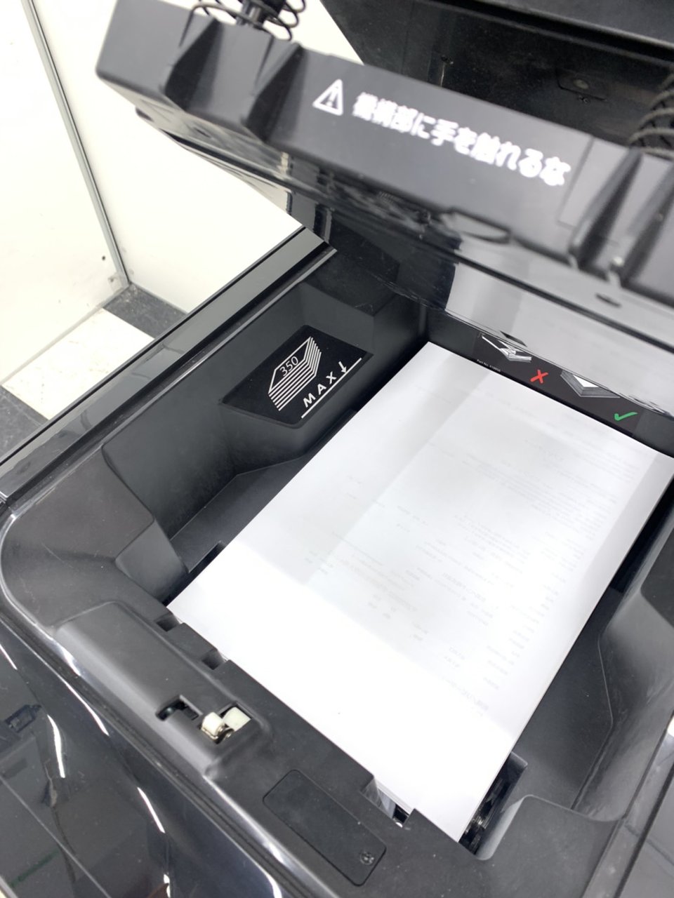 本機種のオートフィードはシュレッダー上部の蓋を開けて、紙を350枚までセット可能で、