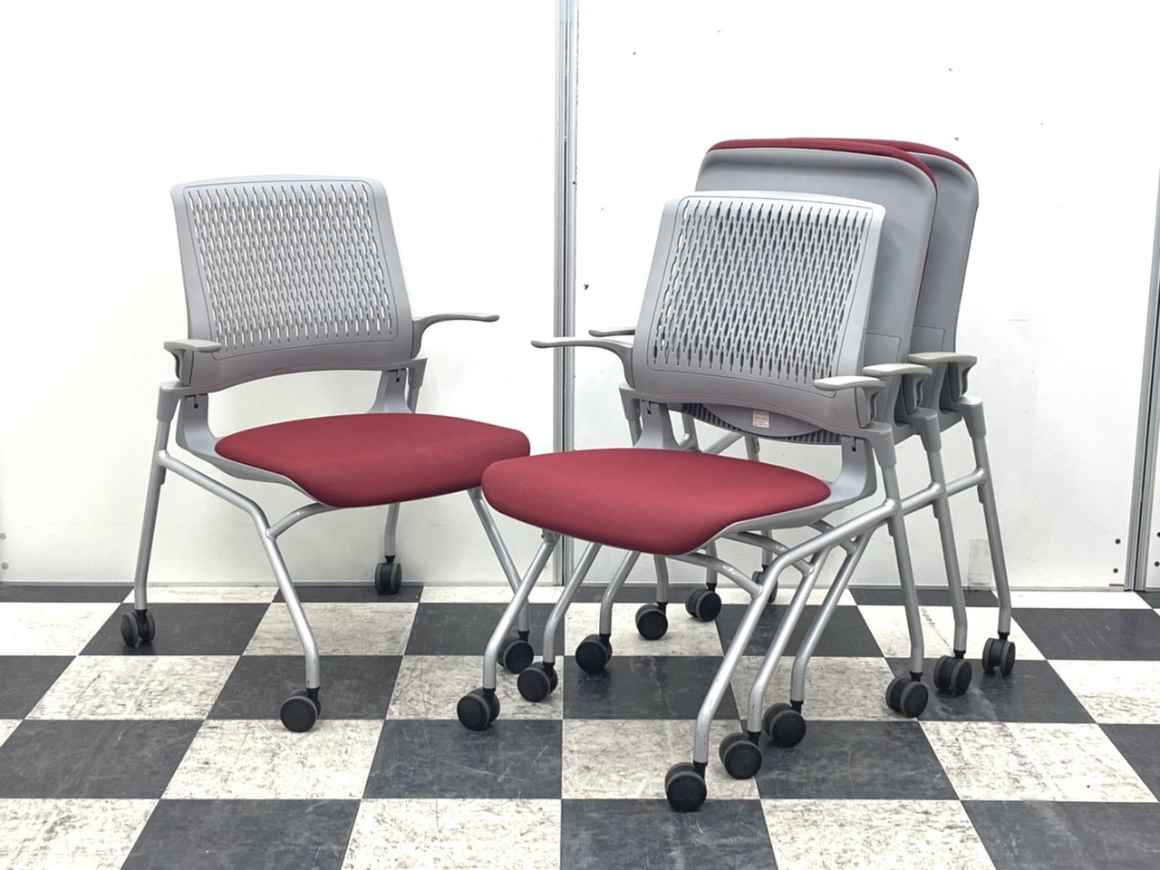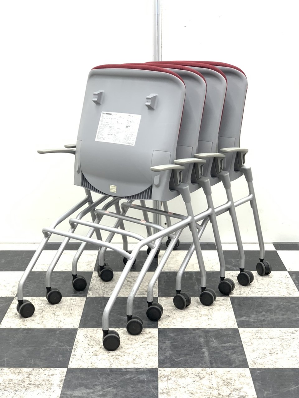 【4脚セット10%オフ】コクヨ(kokuyo)/オルディナ/ワインレッド/ネスティングチェア★- 埼玉本店