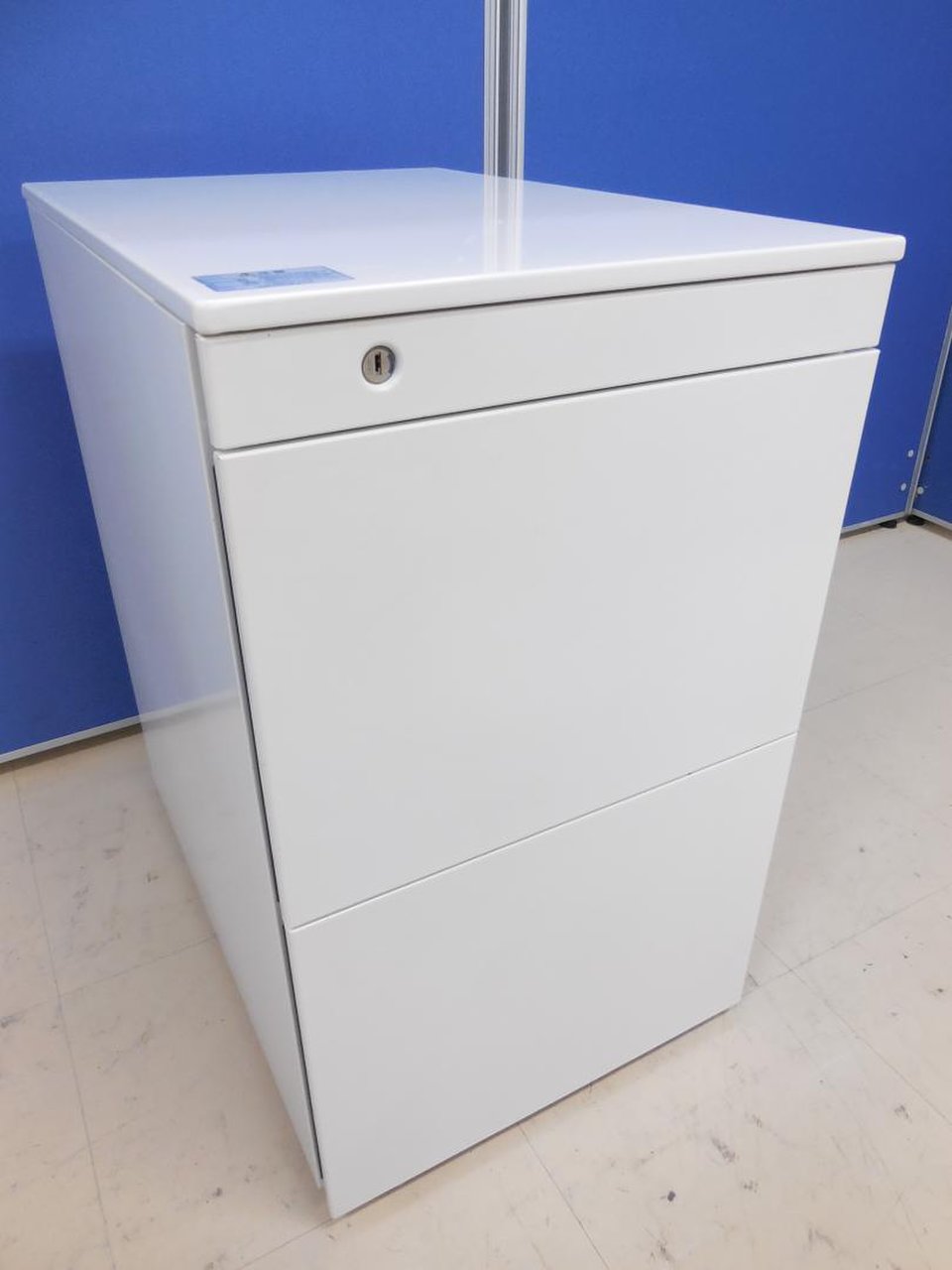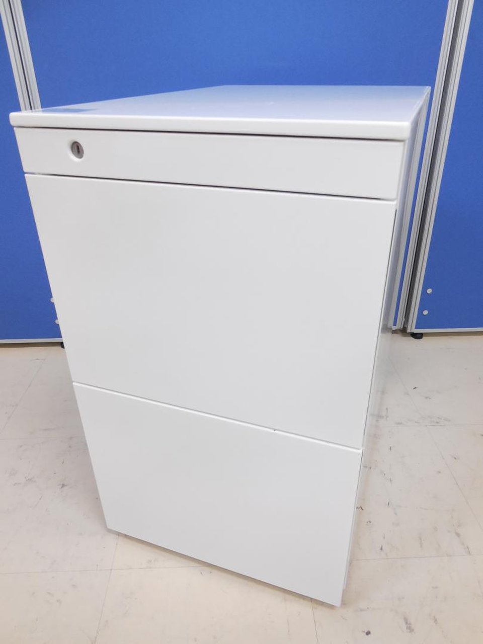 ☆H650mm!【スタイリッシュなデザインで使いやすい!】■オカムラ製 3段ワゴン ネオホワイト フロント把手 シリンダー錠 ■A4サイズのファイルもたっぷり収納できる!【ハイワゴン】