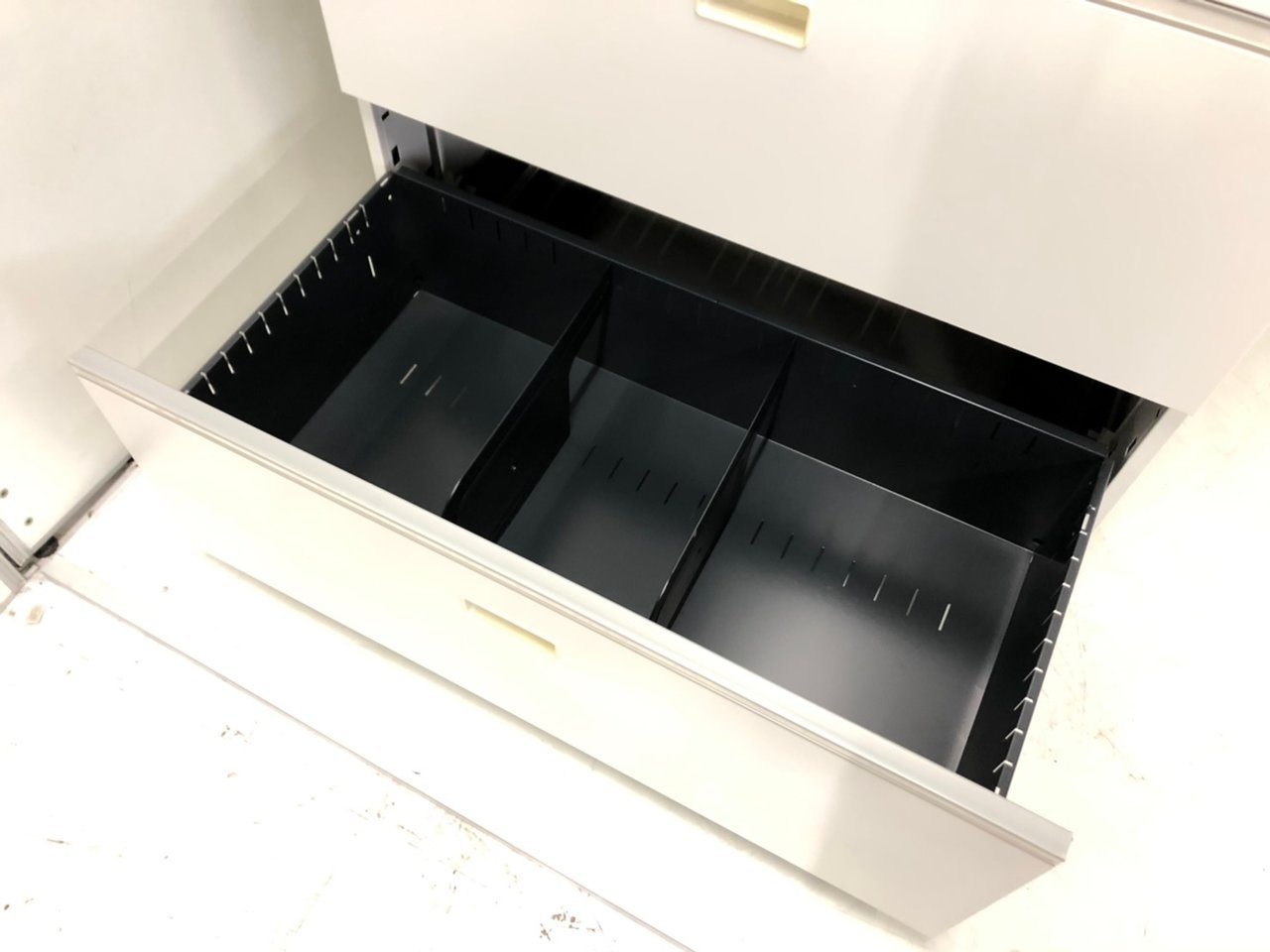 下段は三段ラテラルタイプで、大量の書類やファイルを収納するのに向いています。