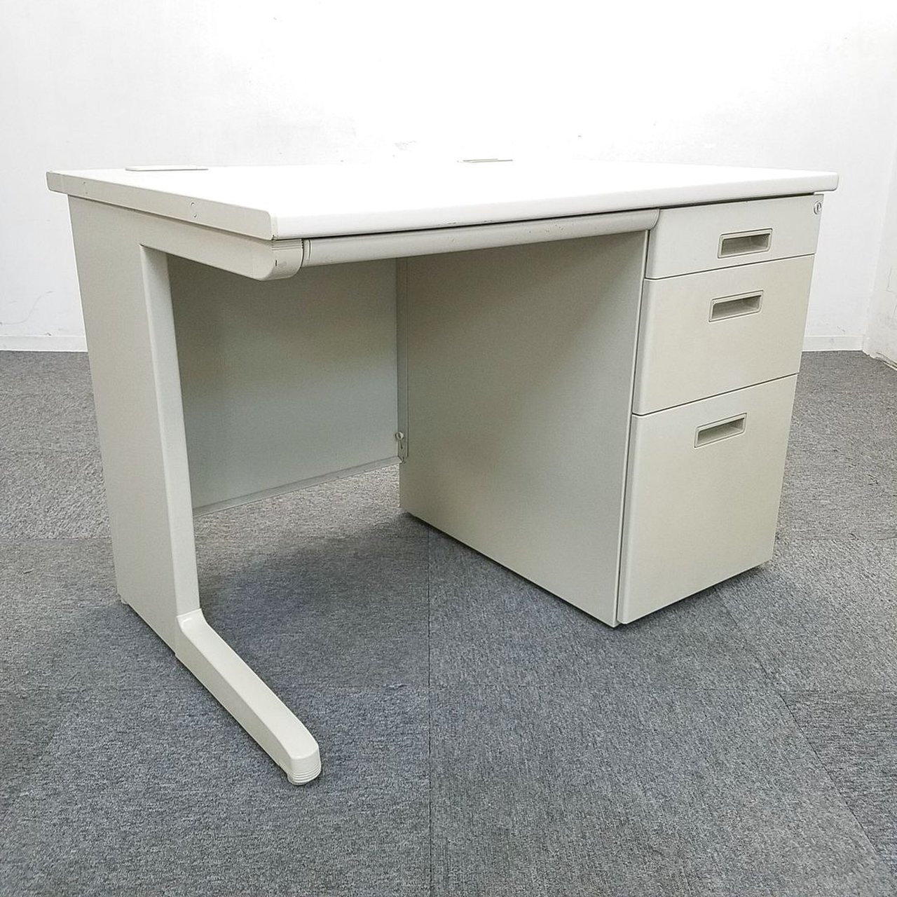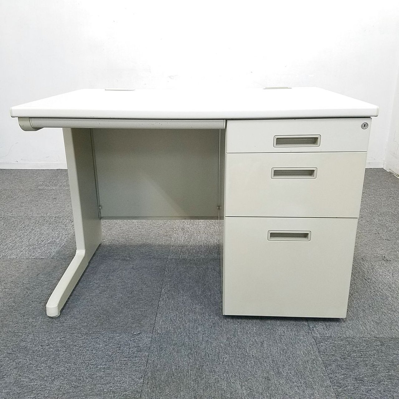 汚れが目立たず事務作業がやりやすい!収納付きのオフィスデスク入荷!横幅1000/ニューグレー/片袖机- つくば店