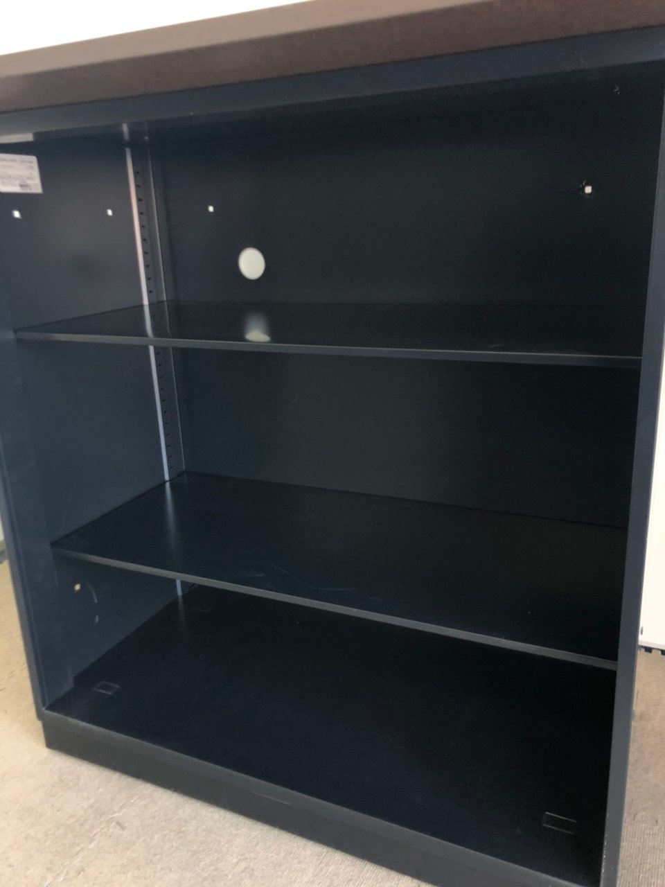 【在庫セール品・1台限定】【T12】■コクヨ製 エディア(オープンタイプ) オープン書庫 ■ブラック ■ナチュラル天板付き ■背面ナチュラル ■2段目オープン ※棚板のピッチ変更は不可となります。【ブラック×ナチュラルでおしゃれなデザイン! 背面からも見栄え良し!】