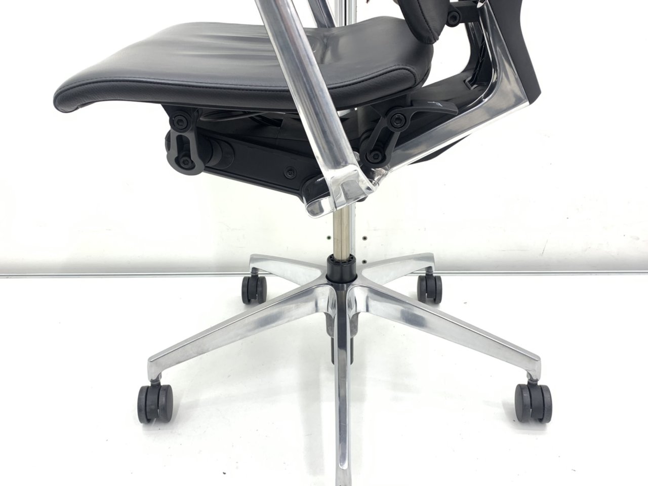 一番の特長は、着座時にチェアがピタっと体にフィットしてくれることです。 人がチェアの座り心地を調節するのではなく、チェアが人に合わせて動くのです!着座時に座面が沈み込みながら後方へスライドし、それと同時に背もたれの腰部分が前にせり出し、「ずっと座っていたくなる」と言われるほどの座り心地に調節してくれます。それを実現しているのが、A.L.S(アクティブ・ランバー・サポート)機構とP.S.S(パッシブ・スライド・シート)機構です。 さらに、背もたれにかかる体圧を徹底的に分析して作られた絶妙なカーブが、常に腰をサポートしつつ背骨のラインに沿ってくれます。