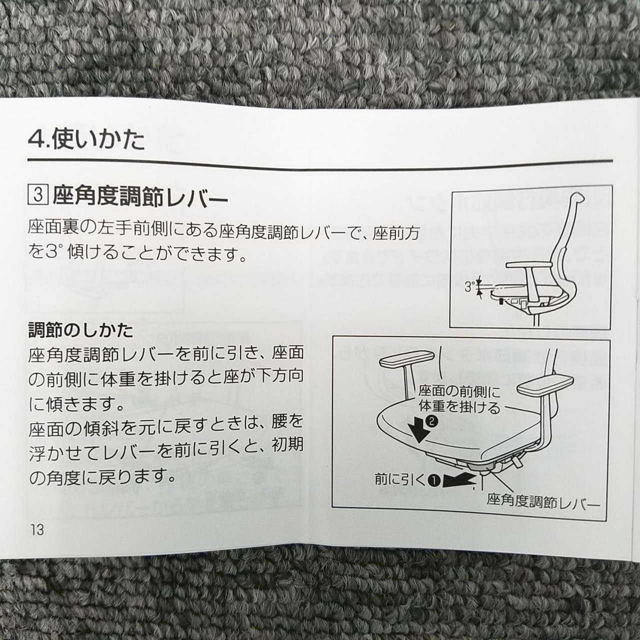 前傾姿勢(3°下がります)