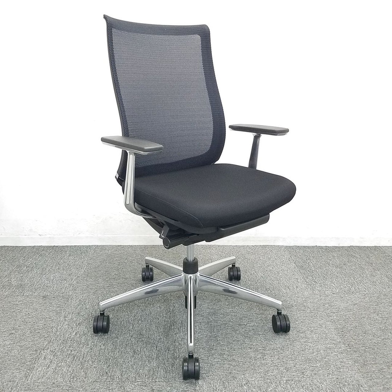 前傾機能付き高級チェア!重厚感のあるブラック×ポリッシュ仕様 応接室や会議用にもおすすめ! ■コクヨ/ベゼル/ブラック テクスチャードメッシュ