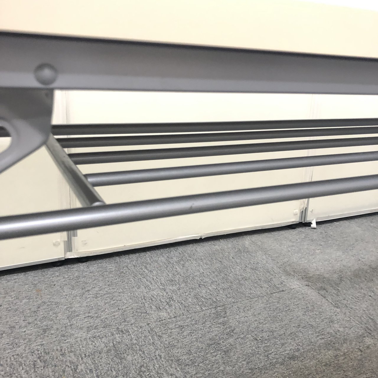 - 一部不具合あり天板歪み、アジャスター無し、キャスター使用不可ようなそのテーブルの本来の効用を果たすための機能以外の一部が使用不可な状態。(例、キャスターロッ ク機能使用不可、棚板無し等がある。)