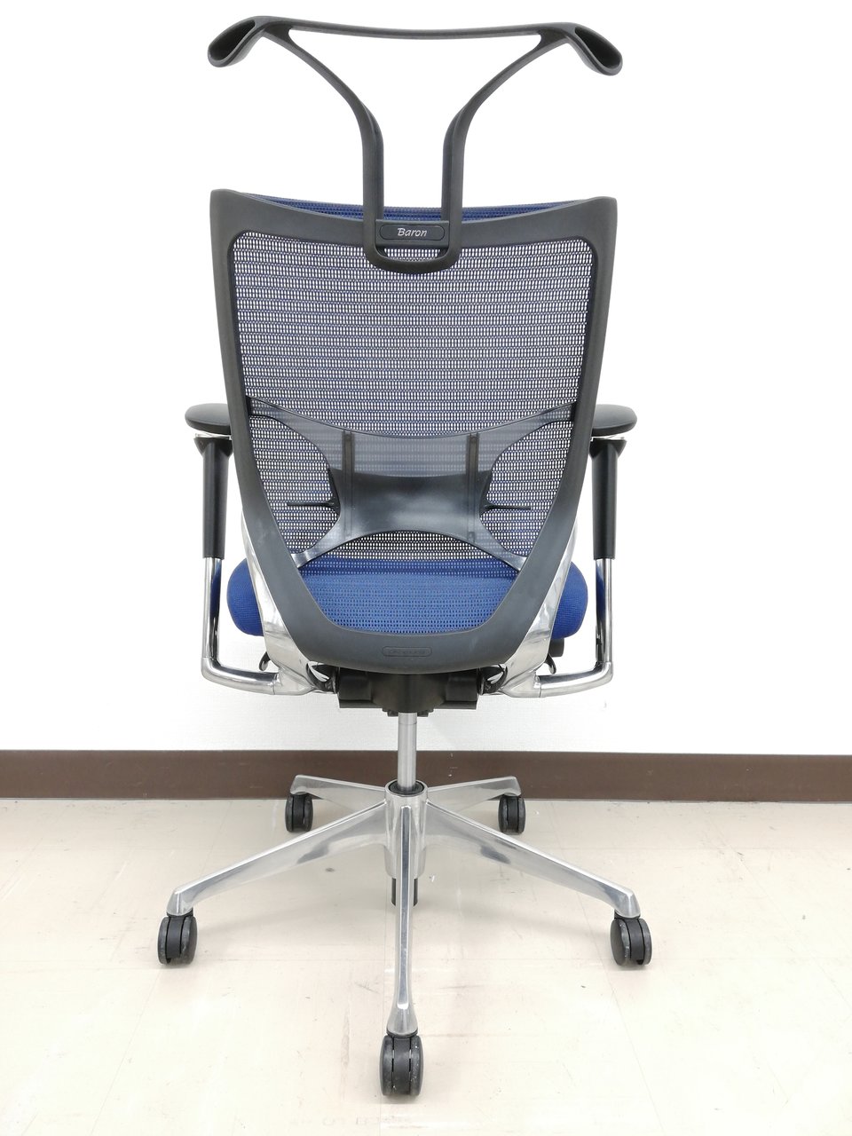 【定価約16万円】【長時間の着座でも疲れにくいサポート感!】■オカムラ(okamura)製 バロンチェア(Baron) 肘付き ローバック ■ブルー ■可動肘 ■メッシュ背面【ベストなポジションが得られる先進設計!】