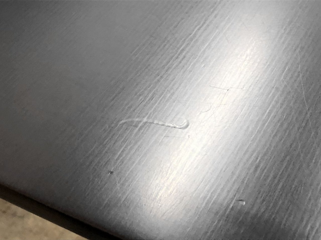 - 目立つ箇所あり傷・凹みが多数、深い傷・凹みが一部ある。(例、天板、幕板、棚板、サイド部分、脚部等にある。)