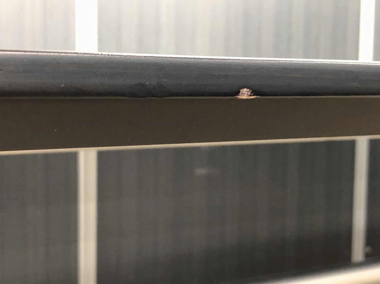 - あり黄ばみ・変色が広い範囲にうっすらある、または濃い黄ばみ・変色が一部ある。(例、天板、幕板、棚板、サイド部分、脚部等にある。)