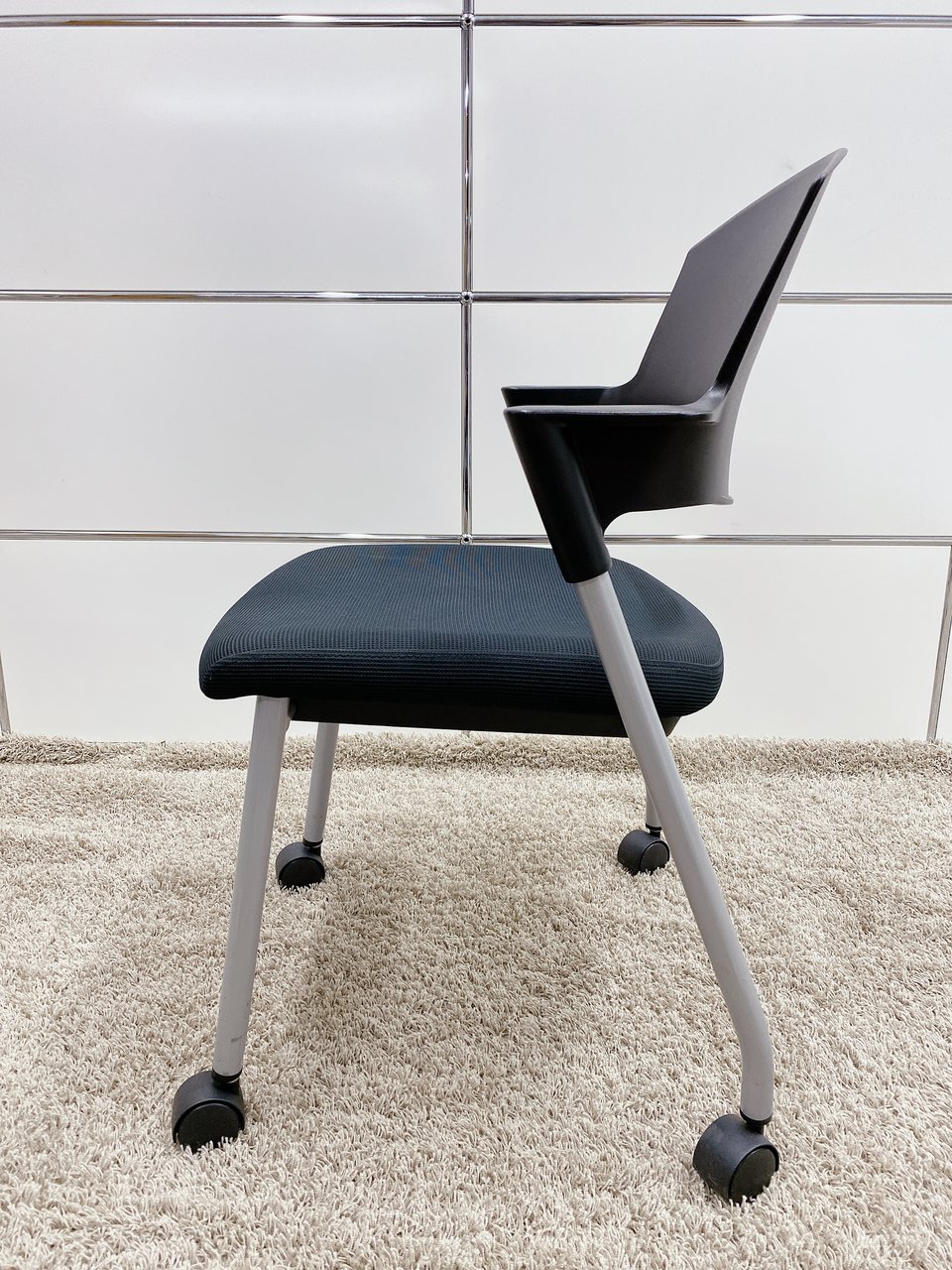 【シンプルスマートなスタッキングチェア!分厚いクッションで長時間でも快適な座り心地!】■スタッキングチェア 肘付ミーティングチェア ■固定肘 ■キャスター付 ■ブラック ■背面樹脂/コクヨ(KOKUYO/プロッティ