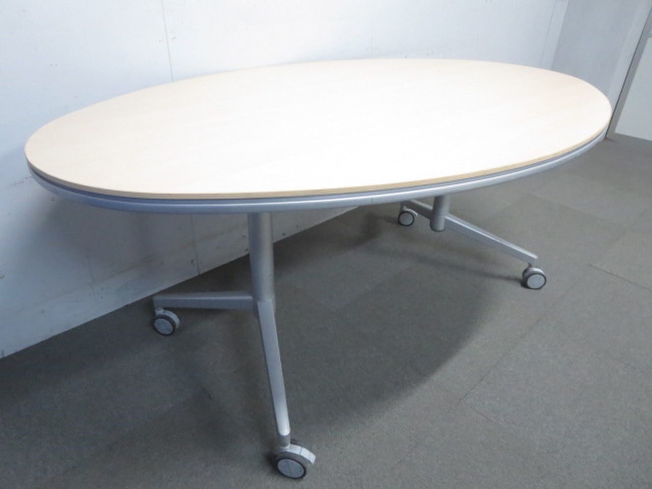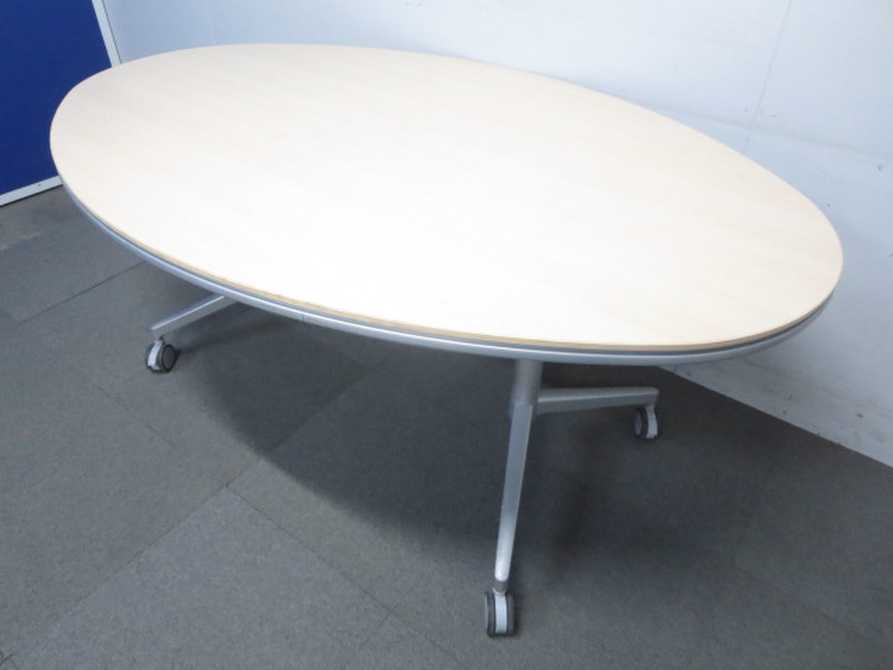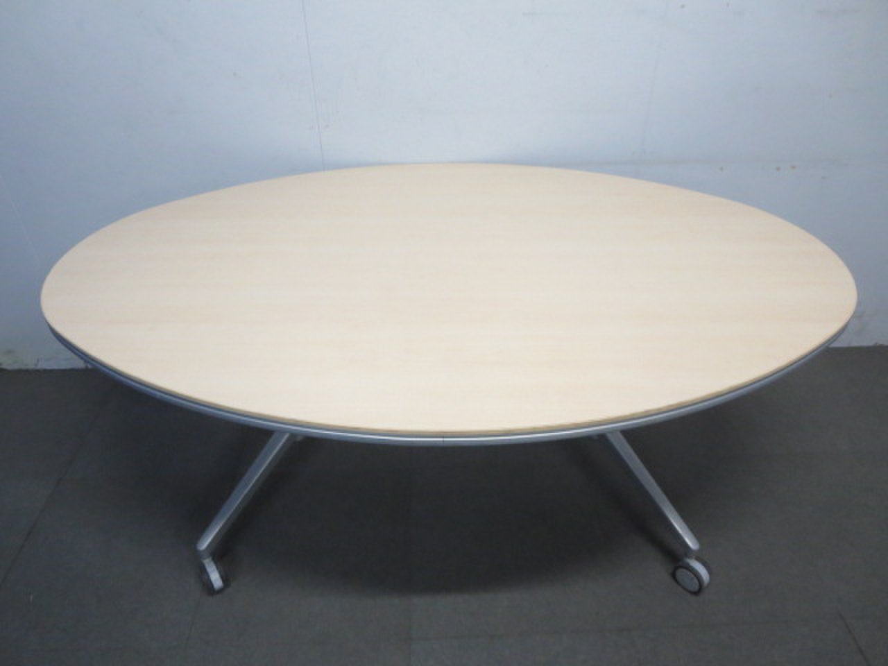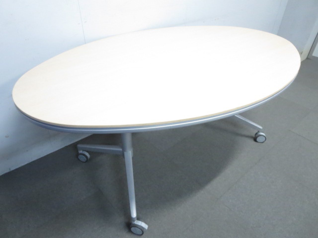 【リラックスした雰囲気に!】■KOKUYO製 楕円型テーブル キャスター付 ナチュラル(木目)【ハイグレード】- 川崎店