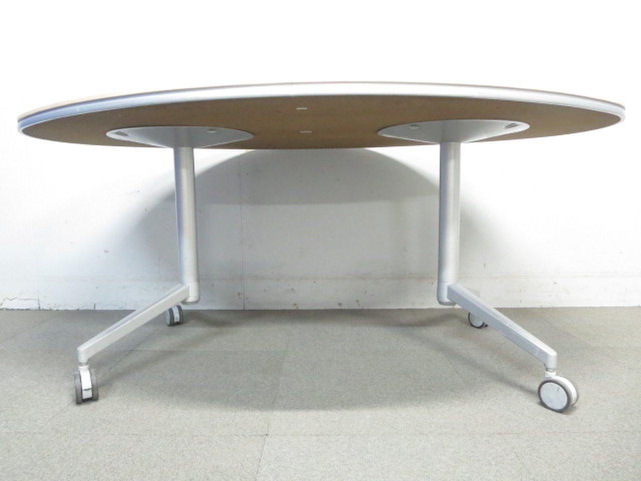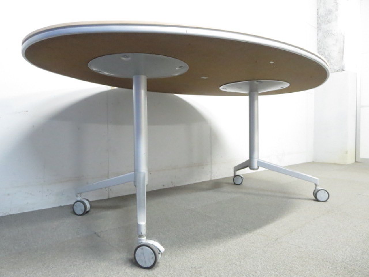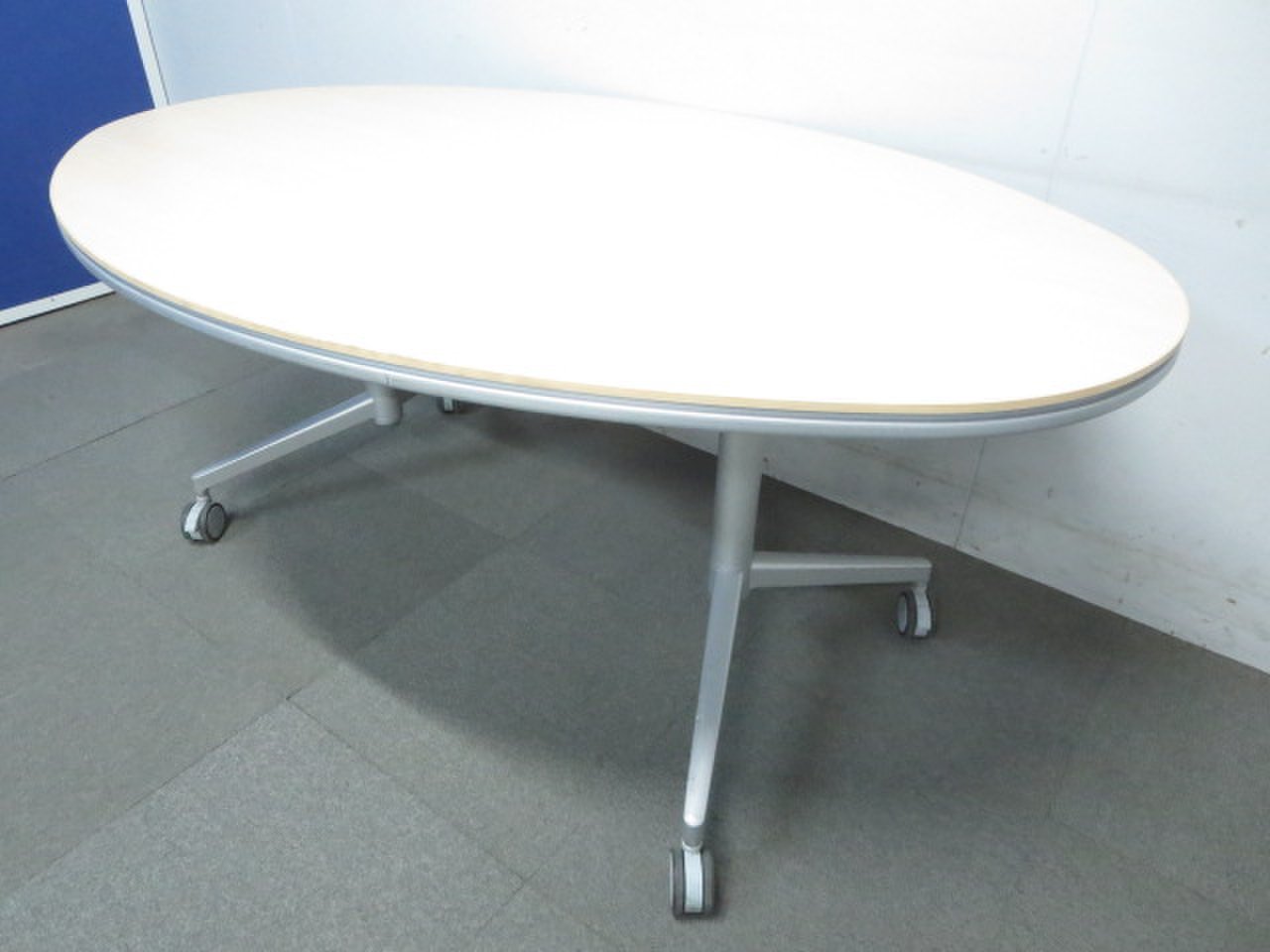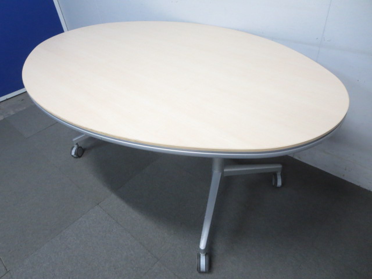 【リラックスした雰囲気に!】■KOKUYO製 楕円型テーブル キャスター付 ナチュラル(木目)【ハイグレード】- 川崎店