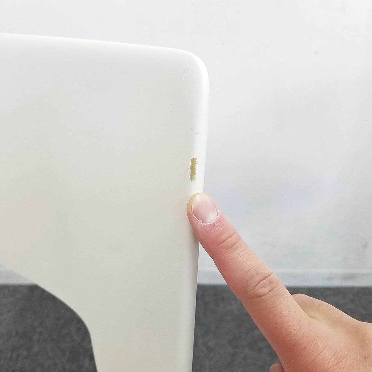 - かなり強い濃い黄ばみ・変色が商品全体にある。(例、座面・背もたれ、脚部等にある。)