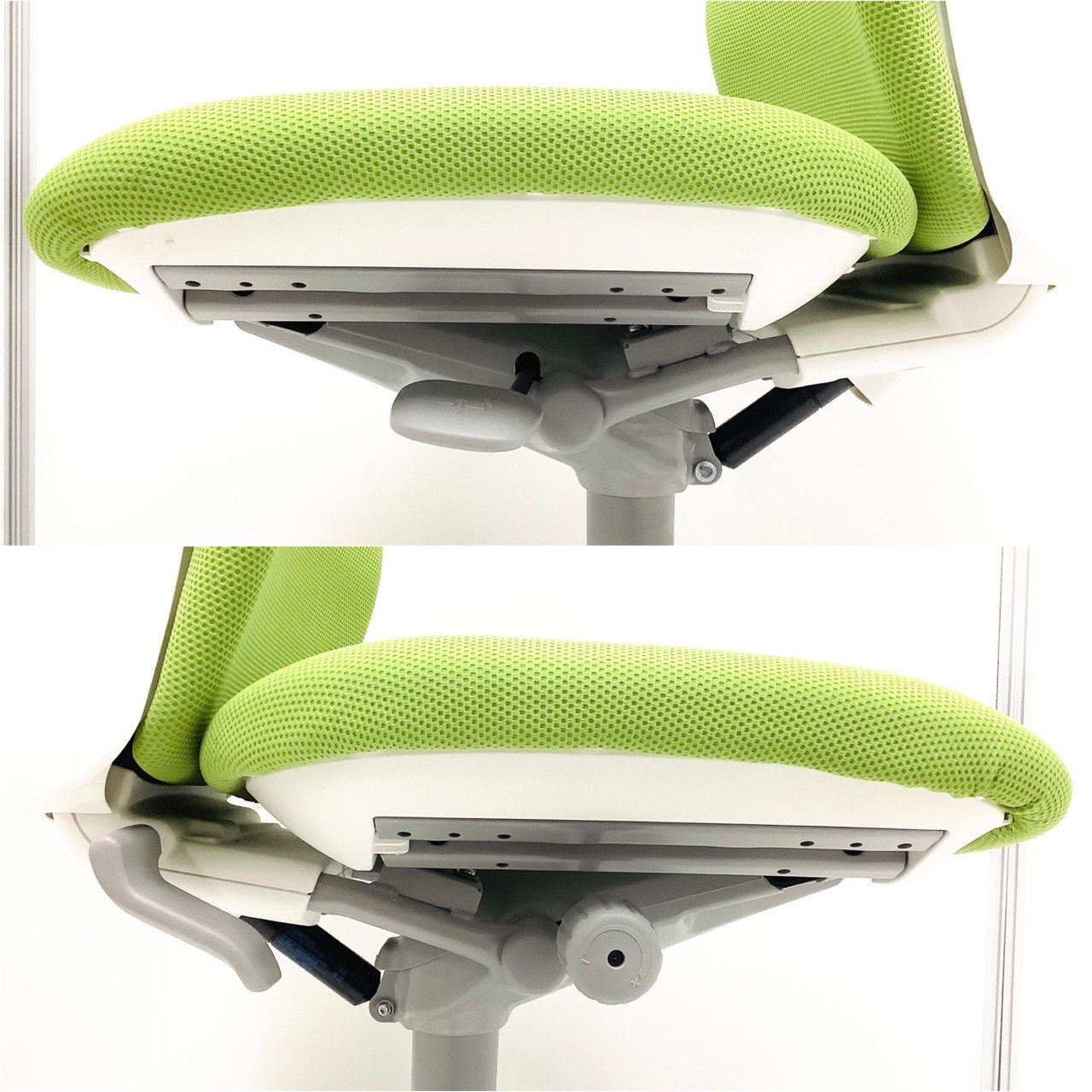 - 座面の高さは、上下ストローク最大92mmで無段階調節可能。フィットする高さに調整できます。
