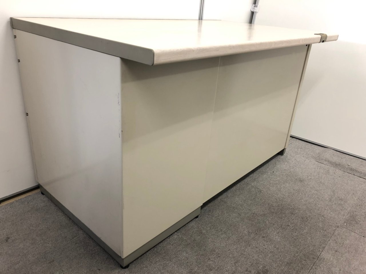 - 一部不具合あり天板歪み、アジャスター無し、キャスター使用不可ようなそのテーブルの本来の効用を果たすための機能以外の一部が使用不可な状態。(例、キャスターロッ ク機能使用不可、棚板無し等がある。)