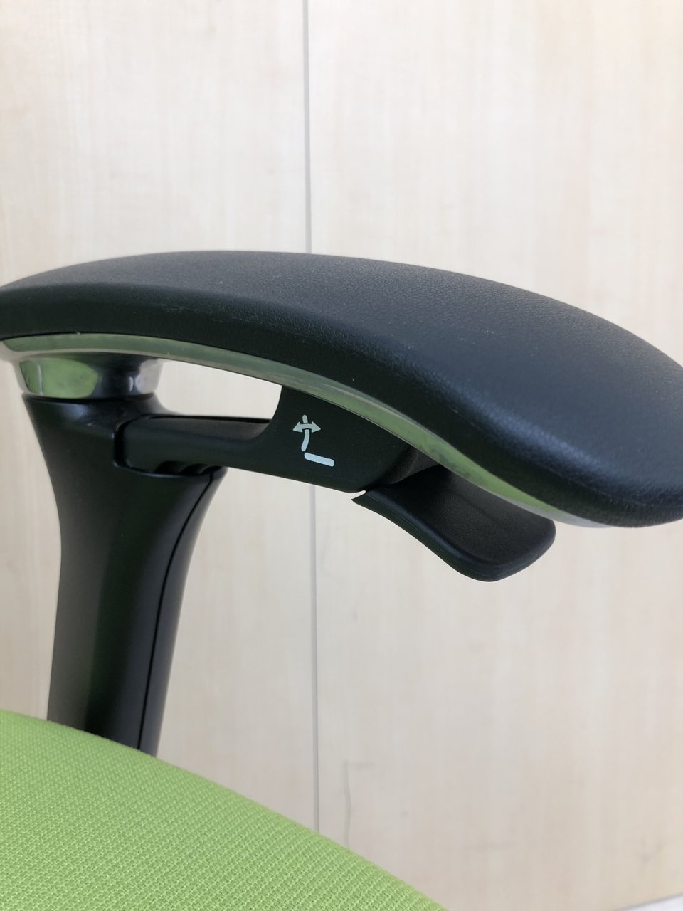 - 肘かけの先端にあるレバーで、リクライニング角度の調整を片手で行うことができます。