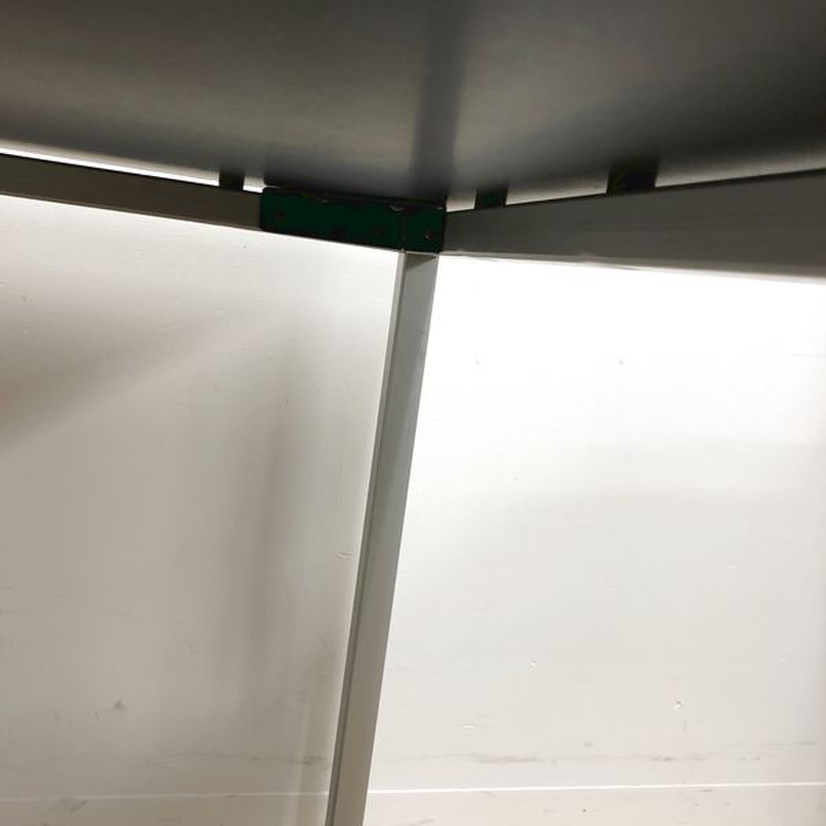- 一部不具合あり天板歪み、アジャスター無し、キャスター使用不可ようなそのテーブルの本来の効用を果たすための機能以外の一部が使用不可な状態。(例、キャスターロッ ク機能使用不可、棚板無し等がある。)