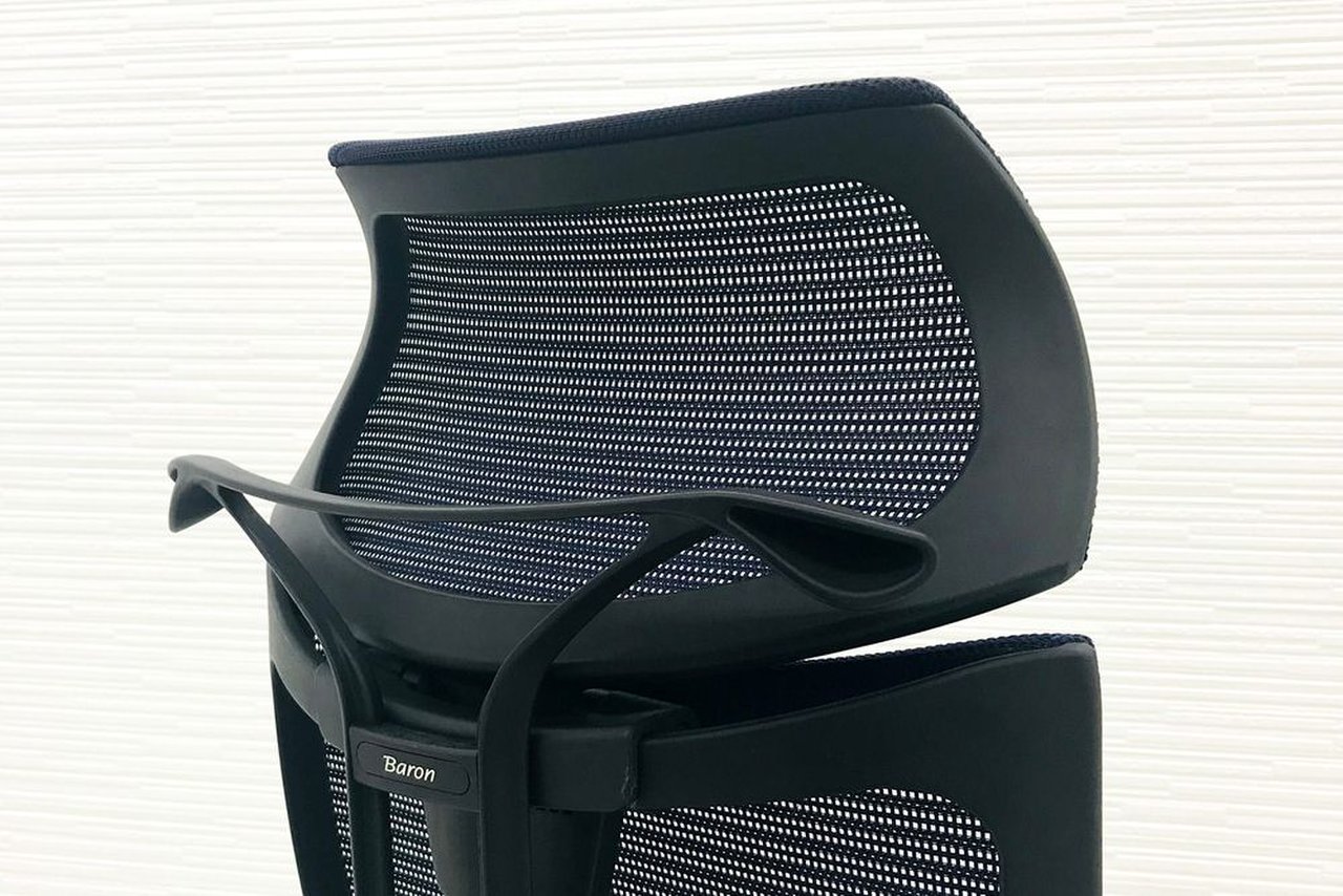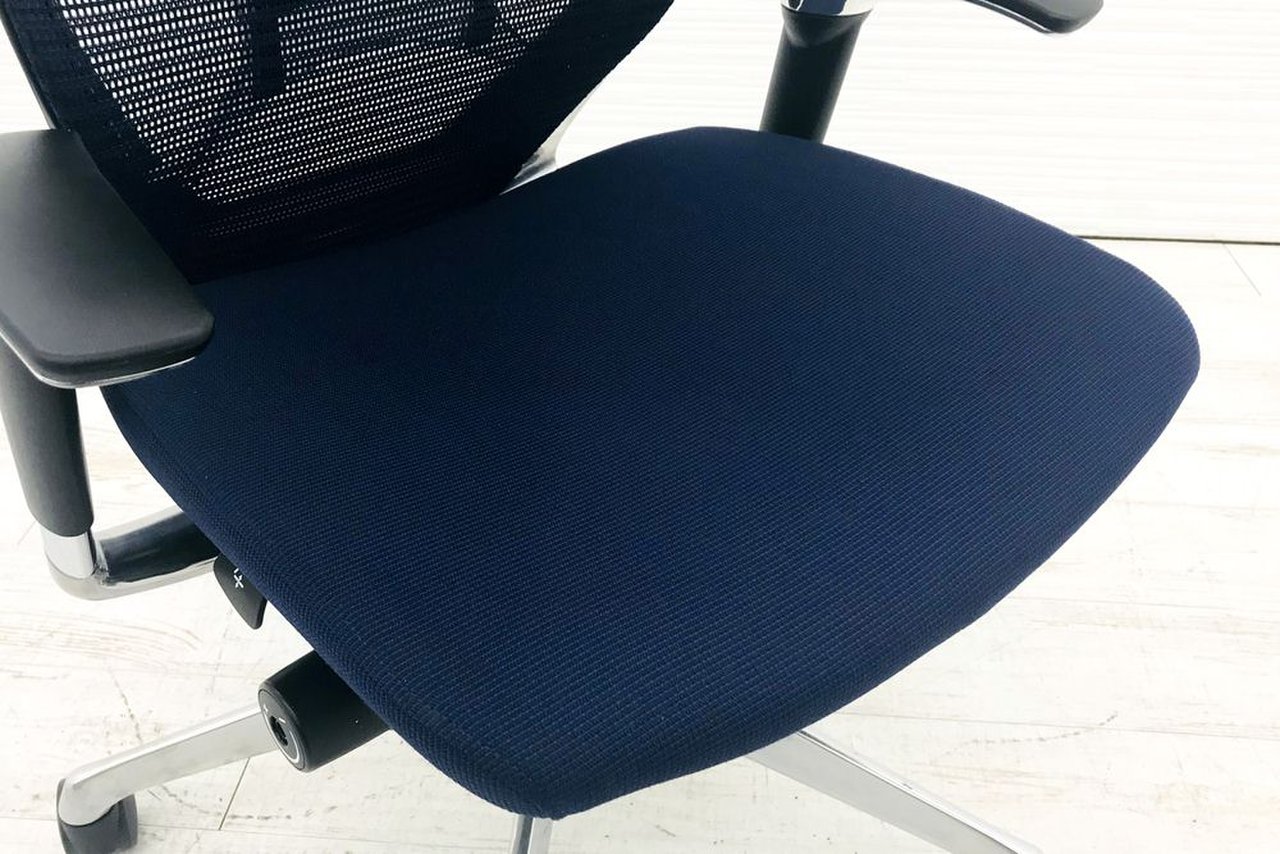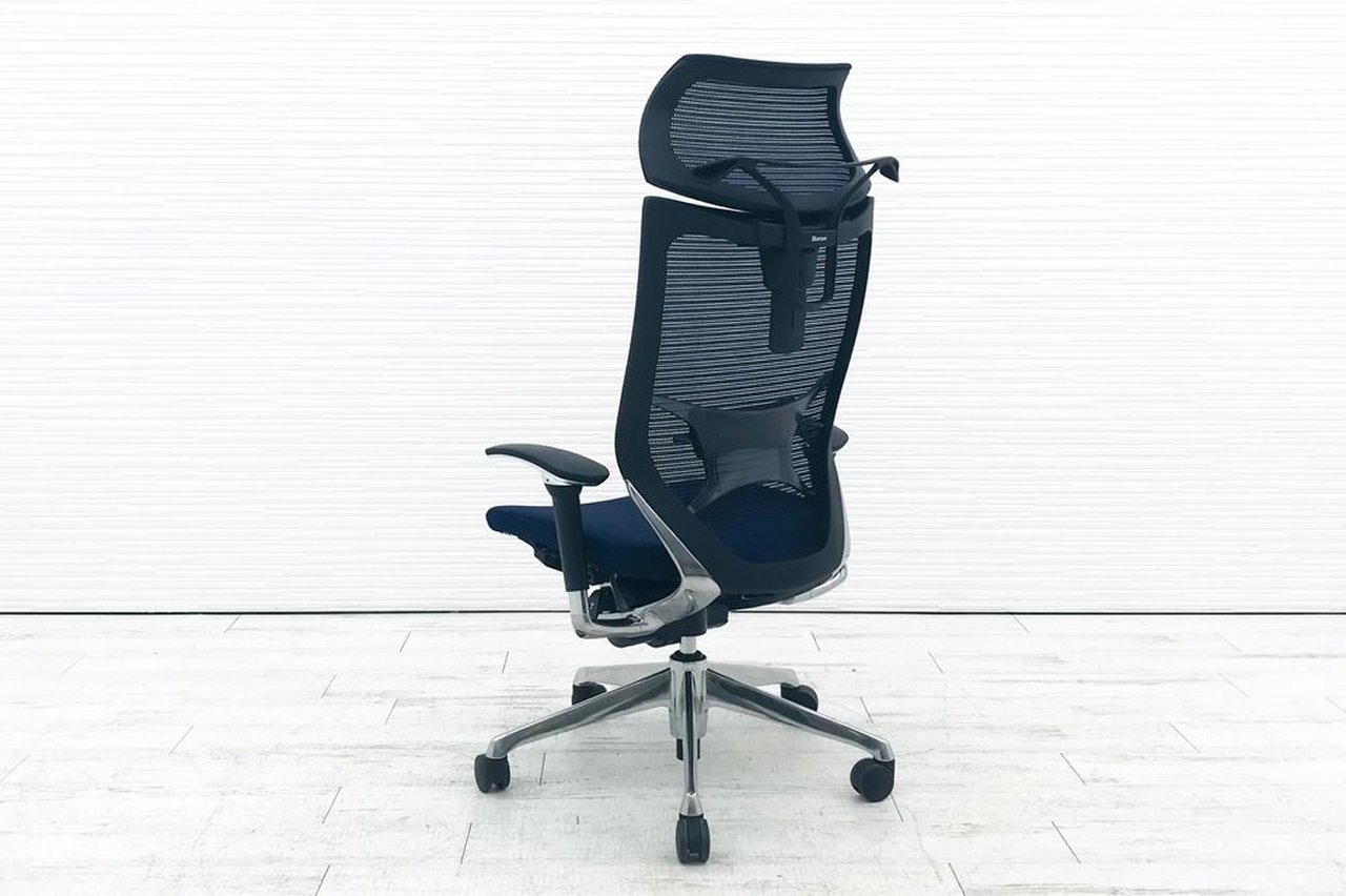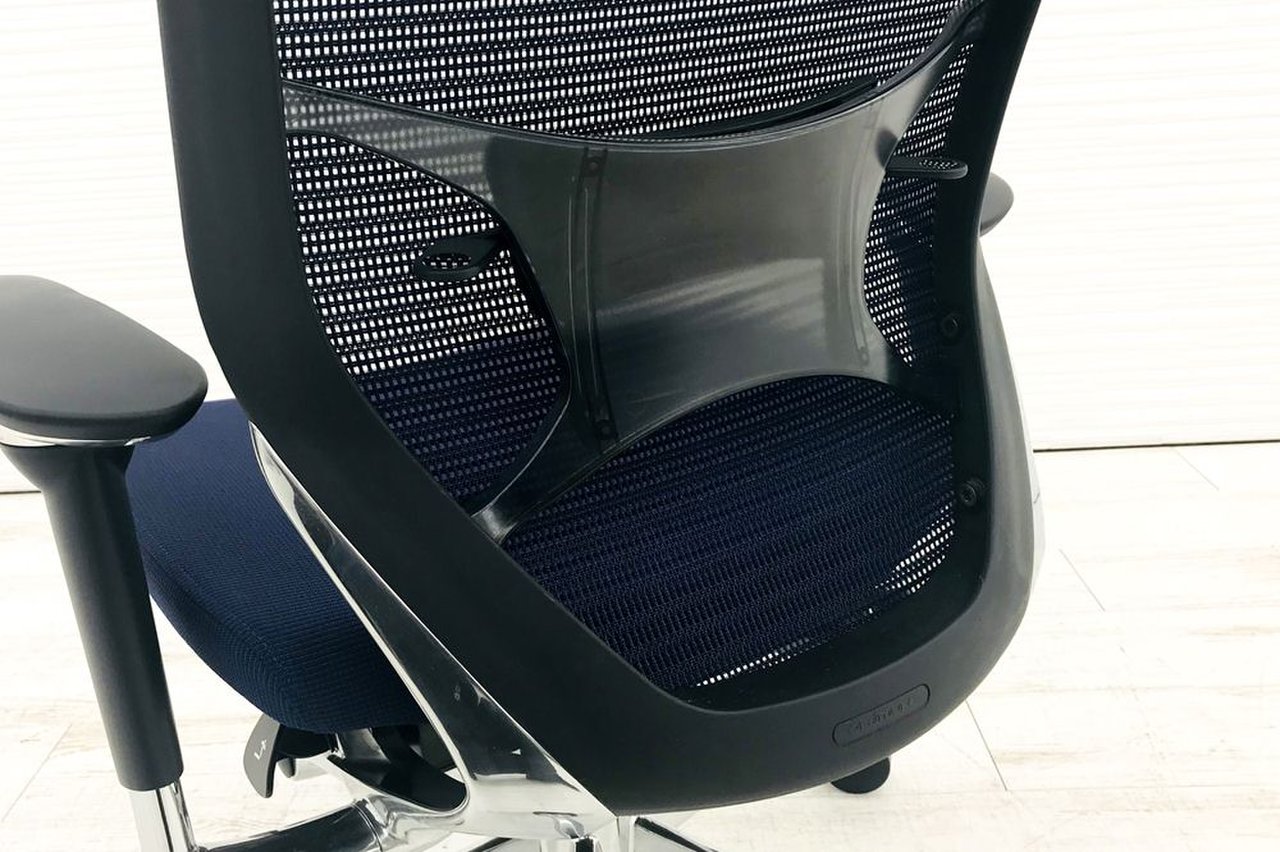 【オフィスの執務室、会議室におすすめ!】■オカムラ(okamura)製 バロン(Baron)チェア 肘付き ハイバック 背面メッシュ ■可動肘 ■ダークブルー × ホワイトシェル【硬めの座面が大人気!国産メッシュチェアの代表格!】【状態良好品!】