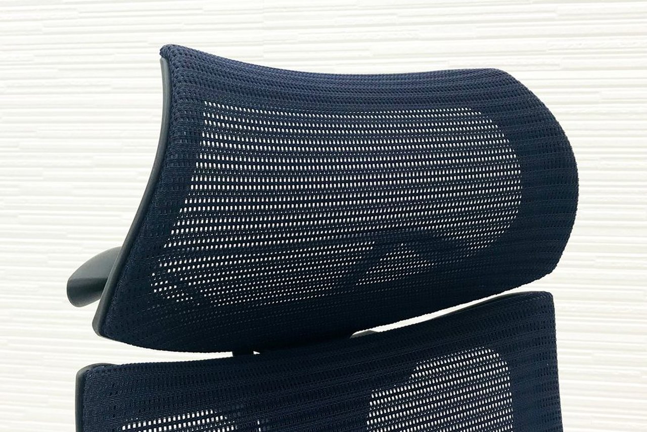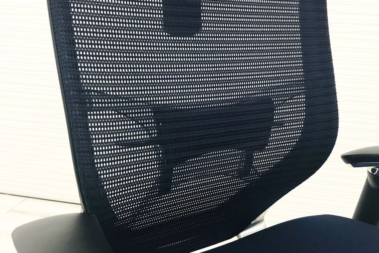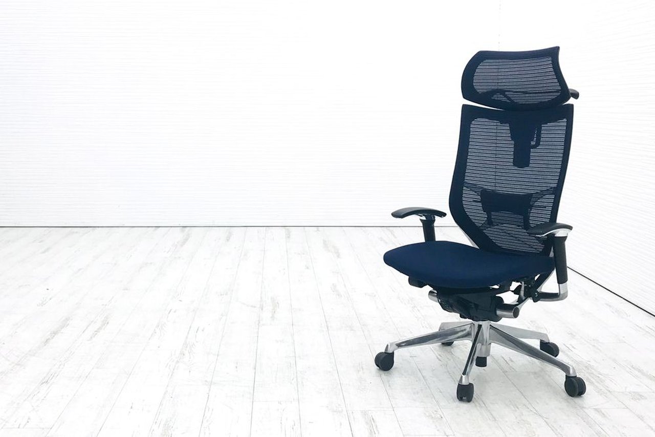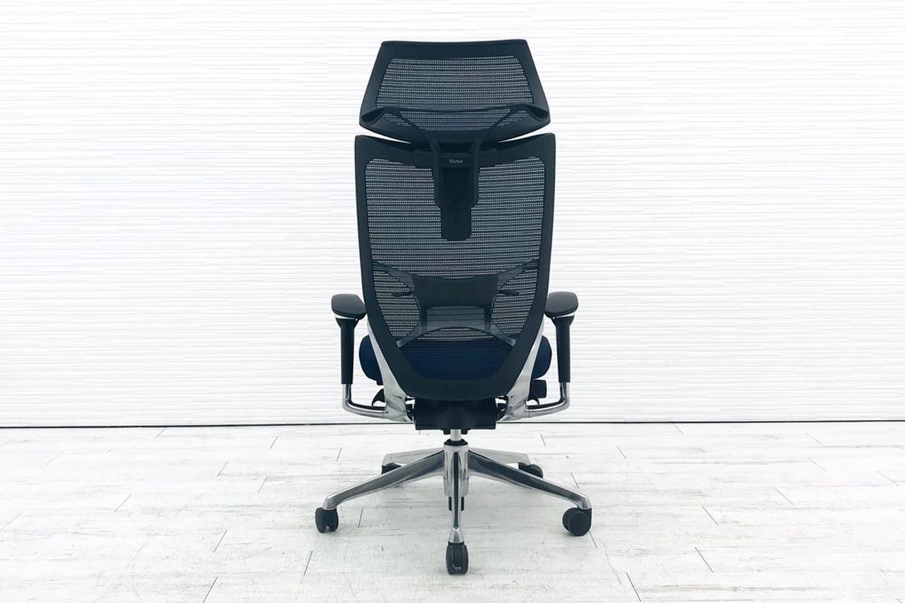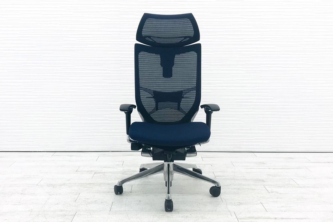 【オフィスの執務室、会議室におすすめ!】■オカムラ(okamura)製 バロン(Baron)チェア 肘付き ハイバック 背面メッシュ ■可動肘 ■ダークブルー × ホワイトシェル【硬めの座面が大人気!国産メッシュチェアの代表格!】【状態良好品!】
