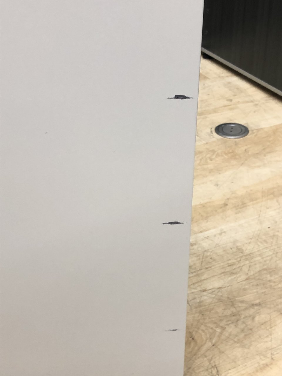 - 目立つ箇所あり傷・凹みが多数、深い傷・凹みが一部ある。(例、天板、正面、背部、サイド部分にある。)