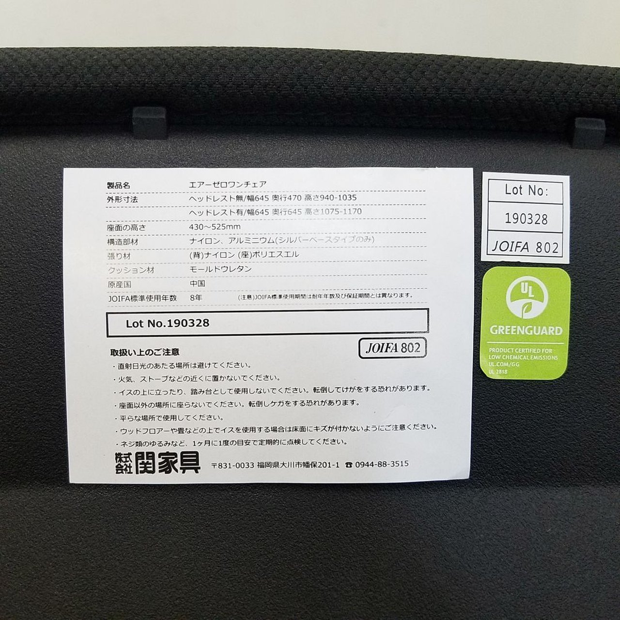【中古】 AIR01 関家具 肘付ハイバックチェア 309306