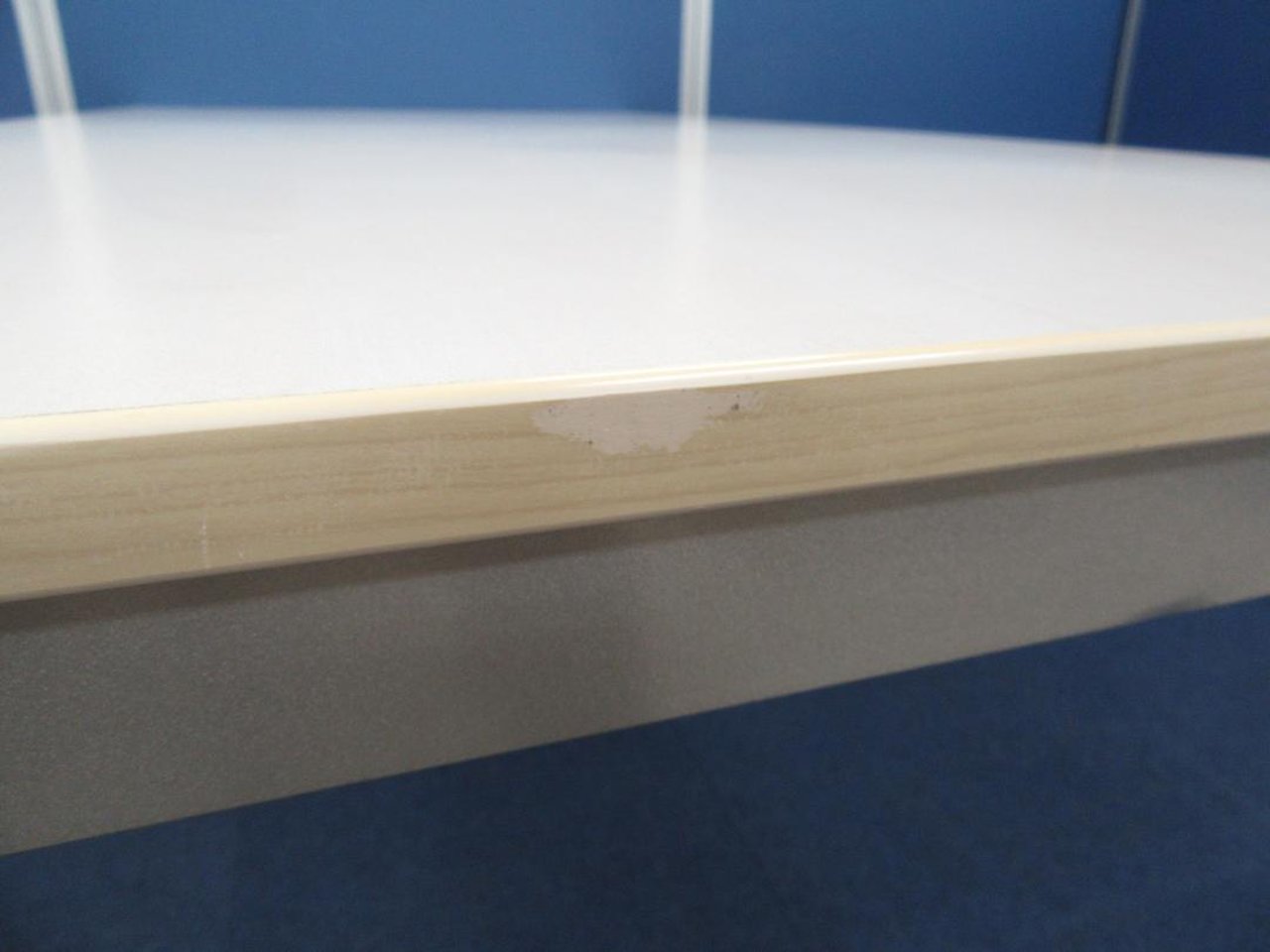 - 壊れている天板歪み、アジャスター無し、キャスター使用不可のようにそのテーブルの本来の効用を果たすための機能に不具合がある。