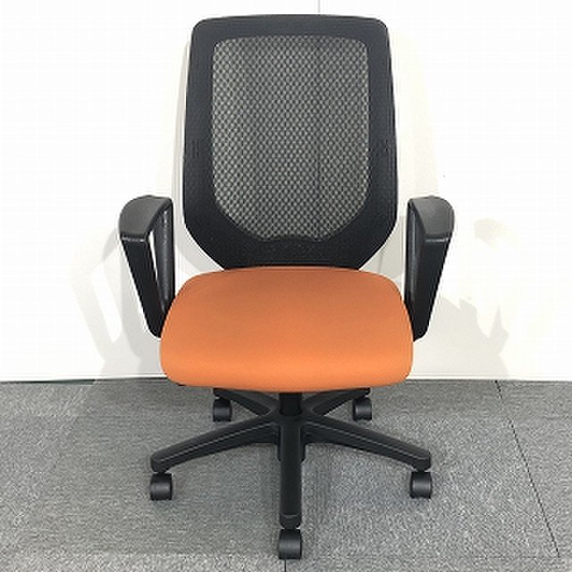 【関西倉庫在庫】 イトーキ コルト 座面オレンジ 肘置き付き メッシュ背面- 大阪梅田本店