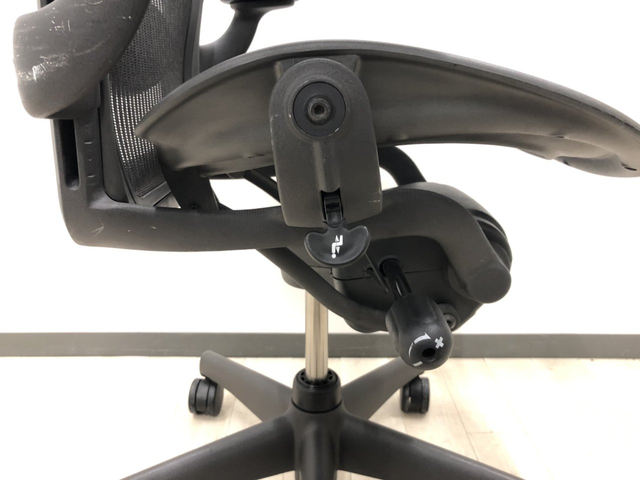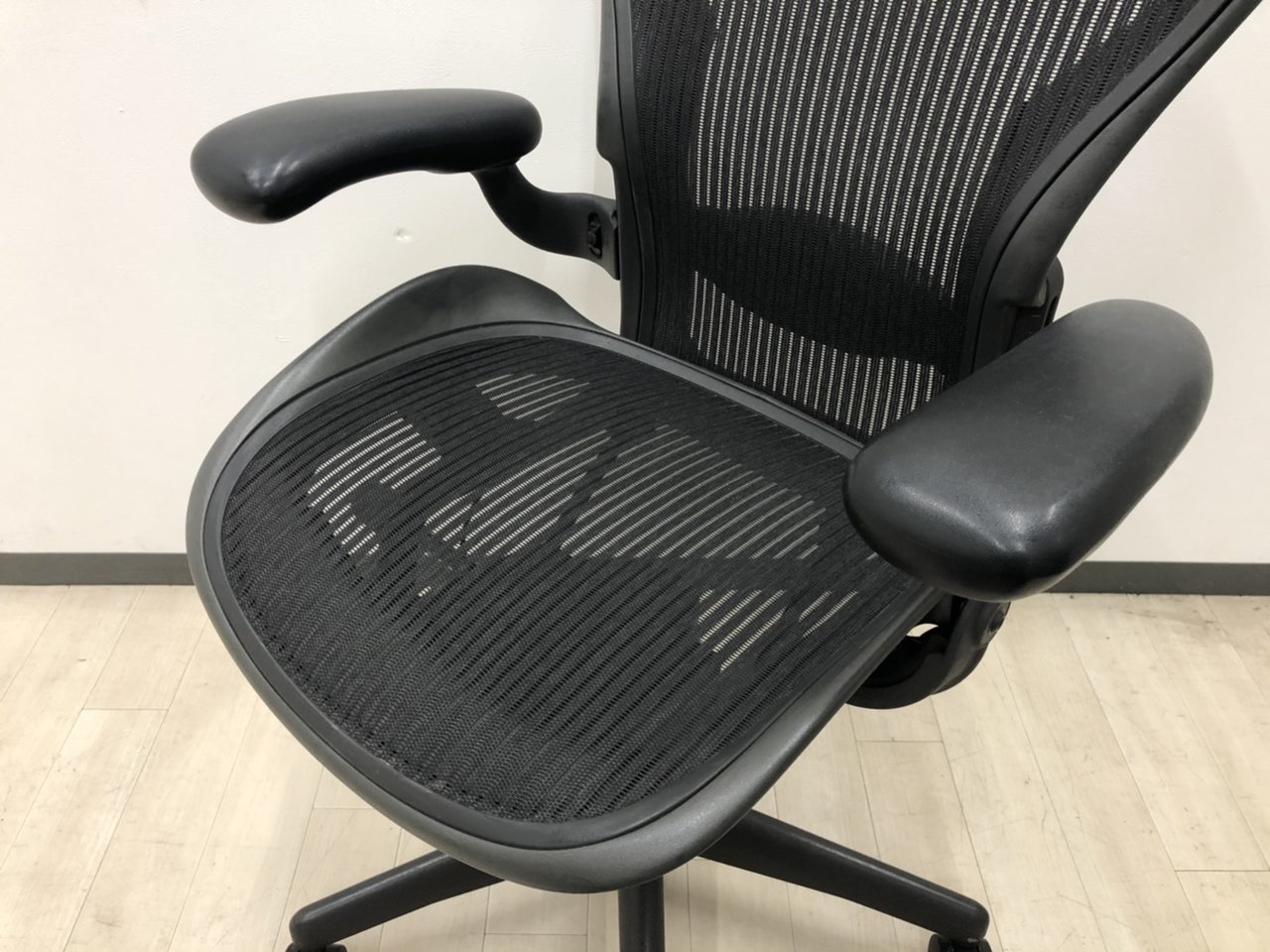 【★状態イマイチのためお安く!】■ハーマンミラー製 アーロンチェア Bサイズ 固定肘 ※キズあり・ランバーサポート無・昇降ガス圧弱めのためお安く!【訳あり特価品】