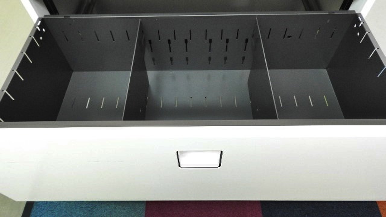 オカムラ製レクトラインの珍しい4段タイプでたくさん収納できる!