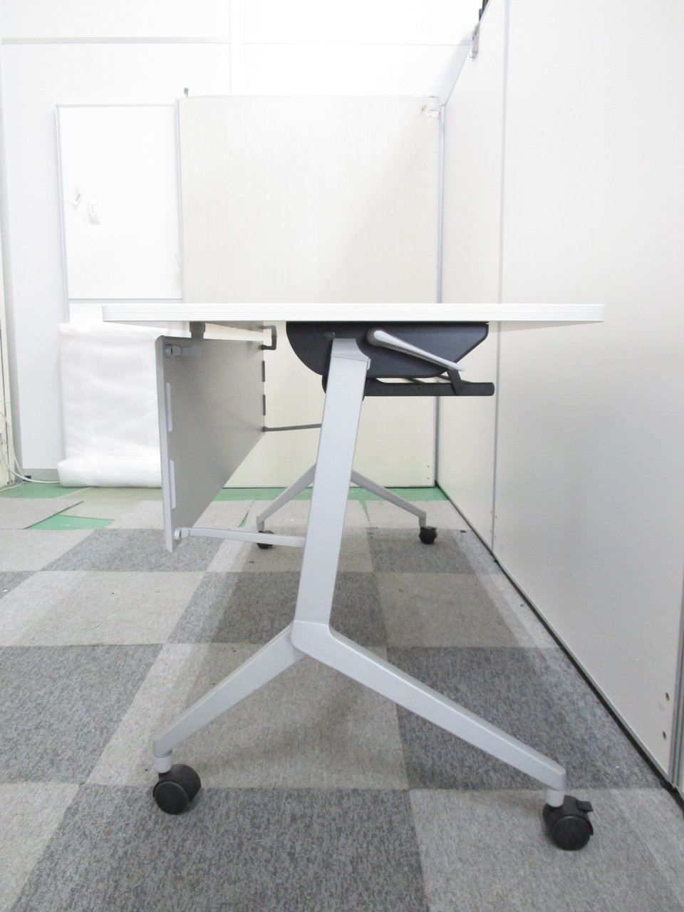 【折りたたみ収納が秀逸!スタイリッシュなデザインで高品質!】■コクヨ(KOKUYO)製 リーフラインシリーズ サイドスタックテーブル フラップタイプ W1200×D450㎜ ■キャスター・幕板付 ■ホワイト