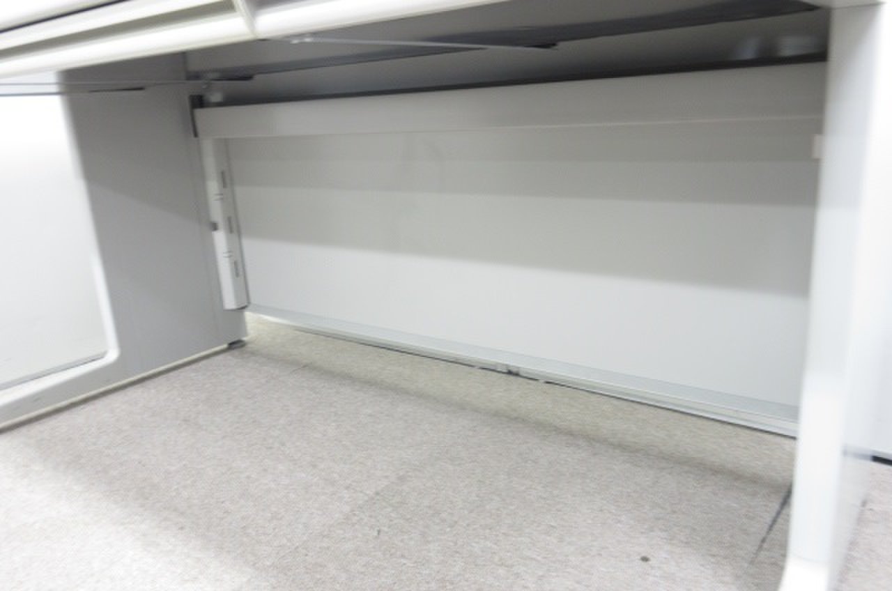 - 袖机のワゴンは、最下段がロング引出しになっており、従来より収納力120%アップ。