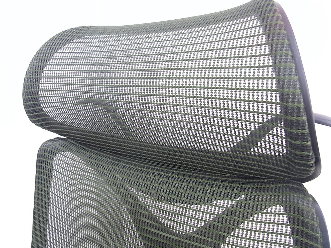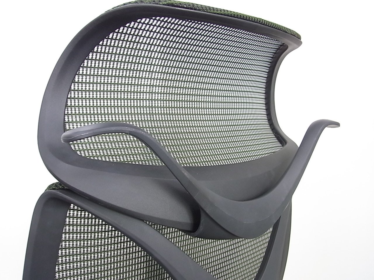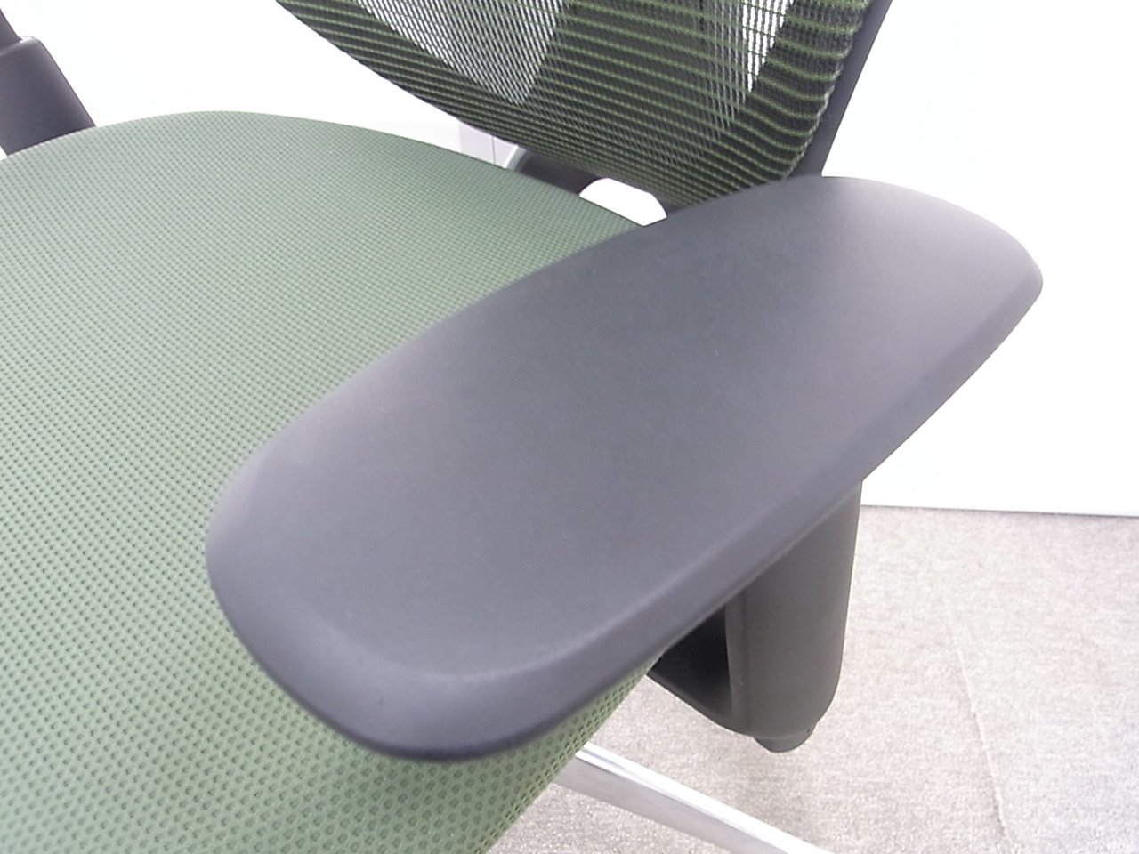 【美しい曲線&透明感のあるメッシュ】■オカムラ製 サブリナチェア ダークグリーン アジャストアーム付 ホワイトボディ ハンガー付【※外部倉庫在庫品(店頭在庫無)】【BR】