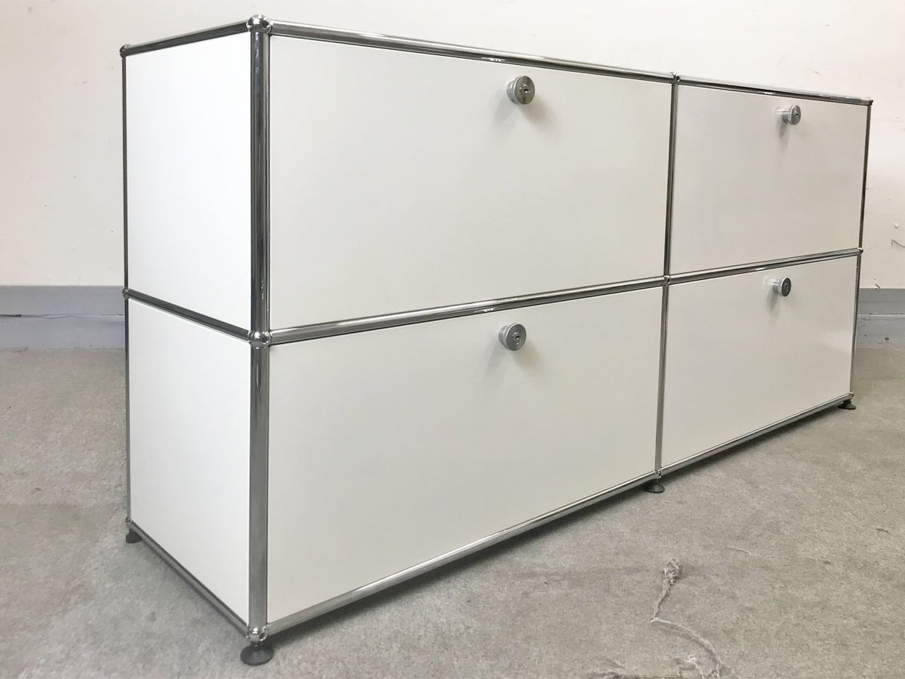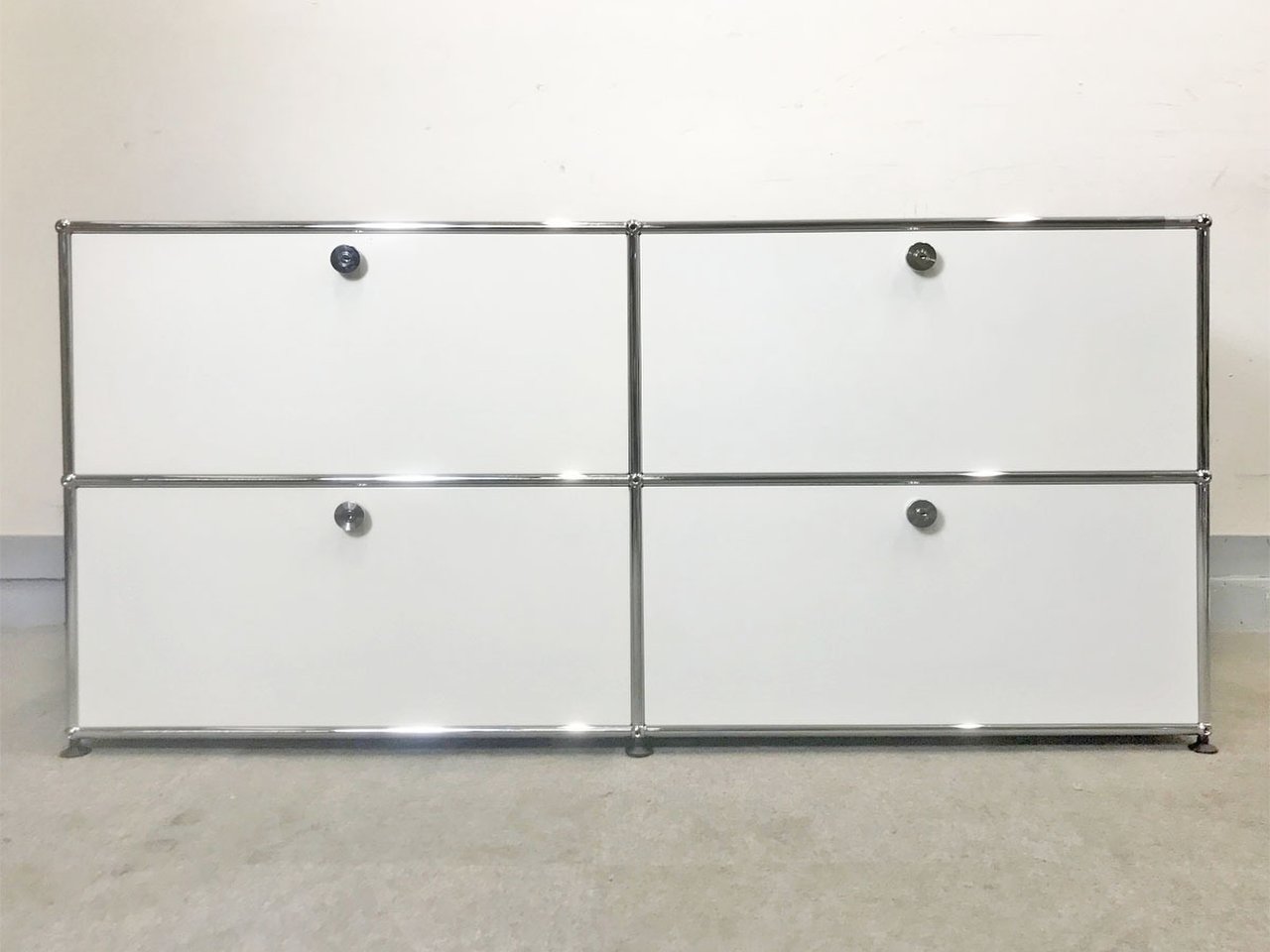 USMハラー 2連2段キャビネット ピュアホワイト サイドボード 鍵付き- デザイナーズ家具センター