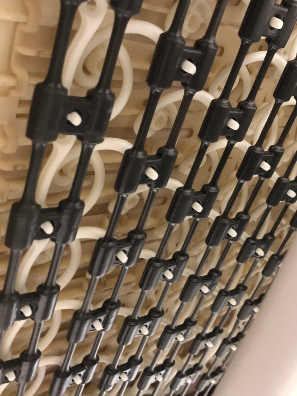 エンボディチェアの座面と背もたれには動的なピクセル構造が採用されており、