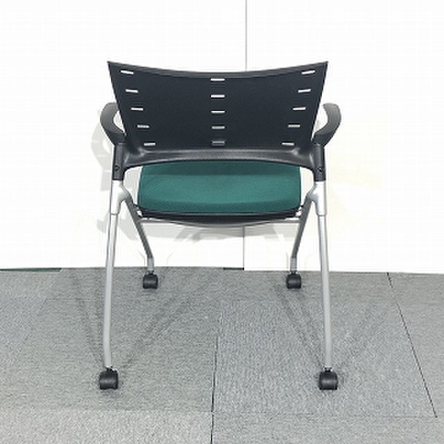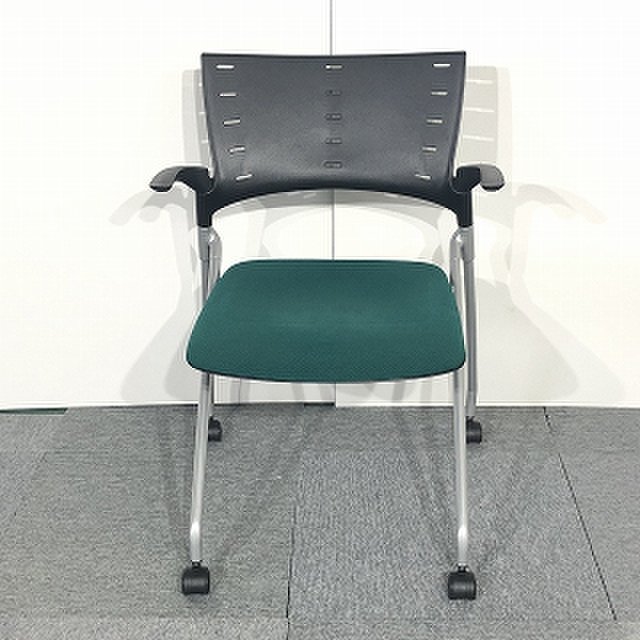 【在庫入替セール】【4脚限定】【平行ネスティングで省スペース化!】■イトーキ(ITOKI)製 マノスチェア(MANOSS)肘無 ネスティングチェア ミーティングチェア ■背パッド キャスター付 ■アイビーグリーン×ブラックシェル