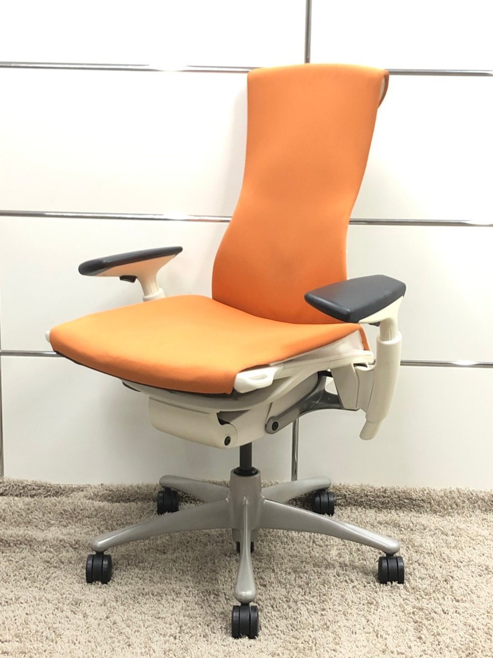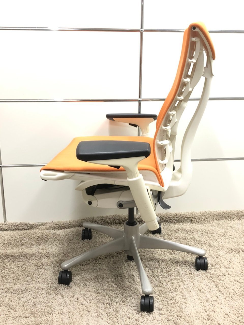 【リラックスした座り心地!】■ハーマンミラー製 エンボディチェア 可動肘付 オレンジ ※肘不良品【おつとめ品】- 川崎店