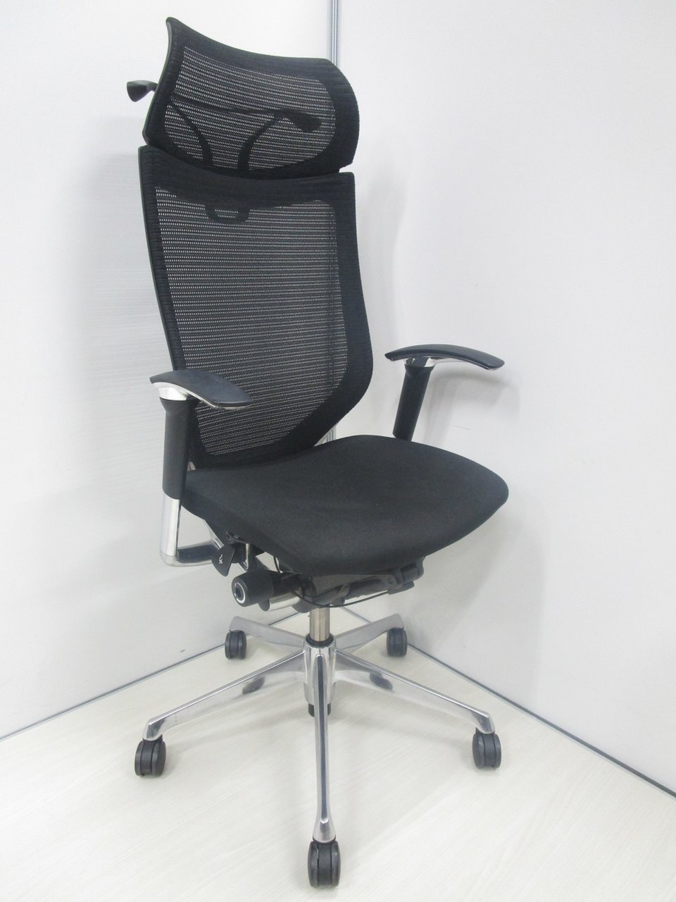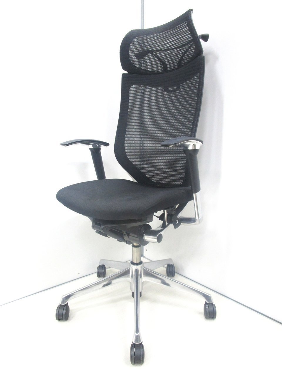 【座面メッシュ】スタンダードメッシュ ブラックフレーム アームレスト付き ヘッド付きオススメ(おすすめ) 大人気 ・Okamura/オカムラ ・Baron/バロン ※横浜本店撮影画像※