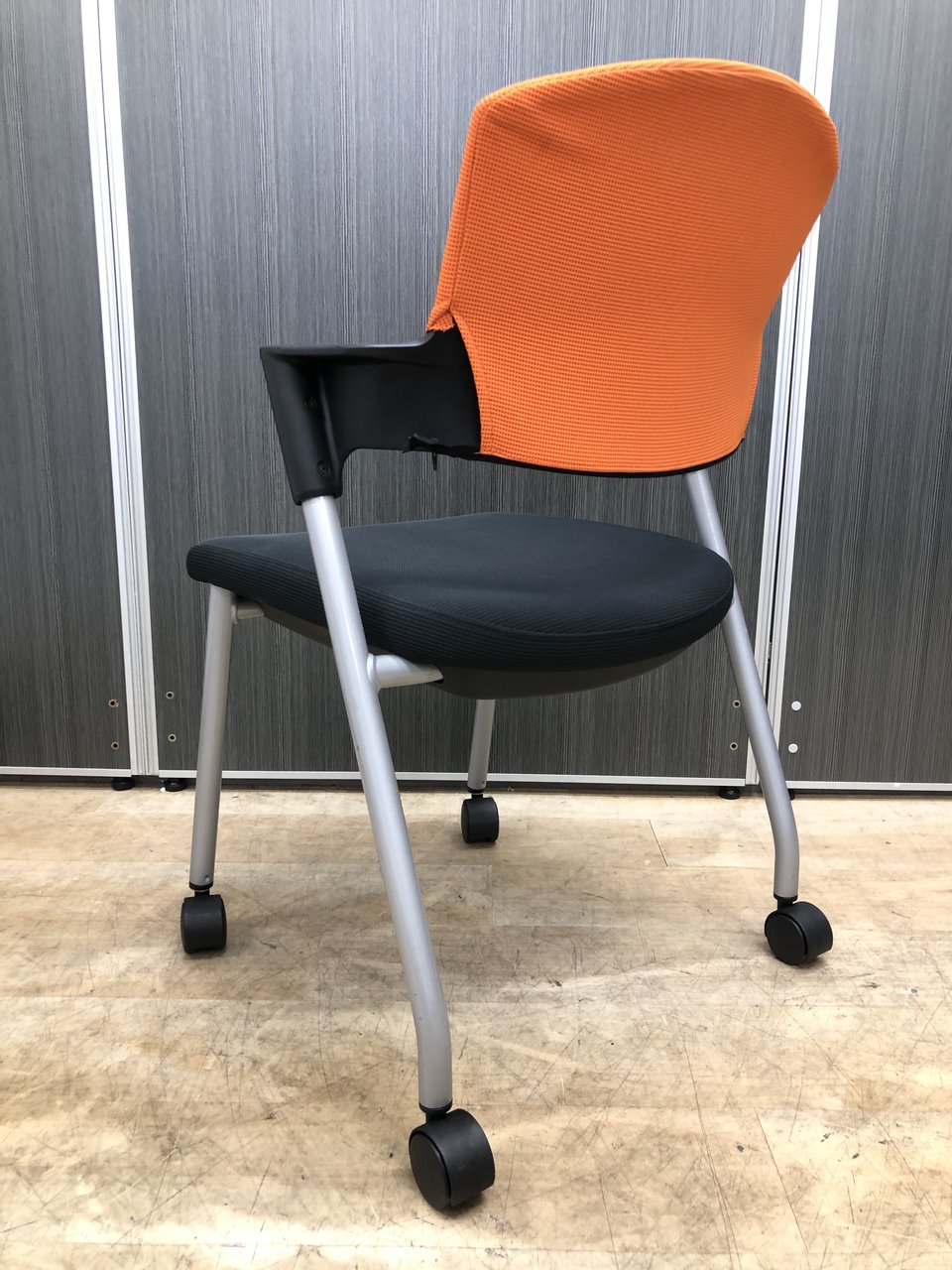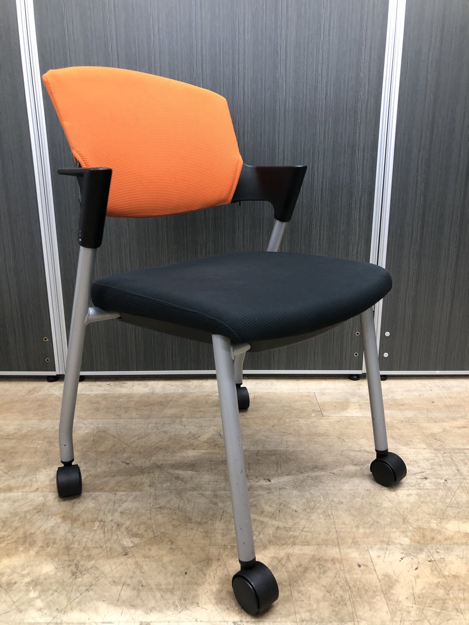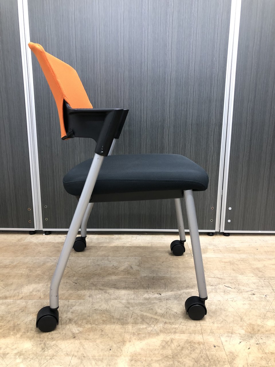【シンプルスマートなスタッキングチェア!】■コクヨ(KOKUYO) プロッティ(Protty)チェア スタッキングチェア ミーティングチェア ■肘付き キャスター付き ■オレンジ【2505】弊社使用欄【A01018053】