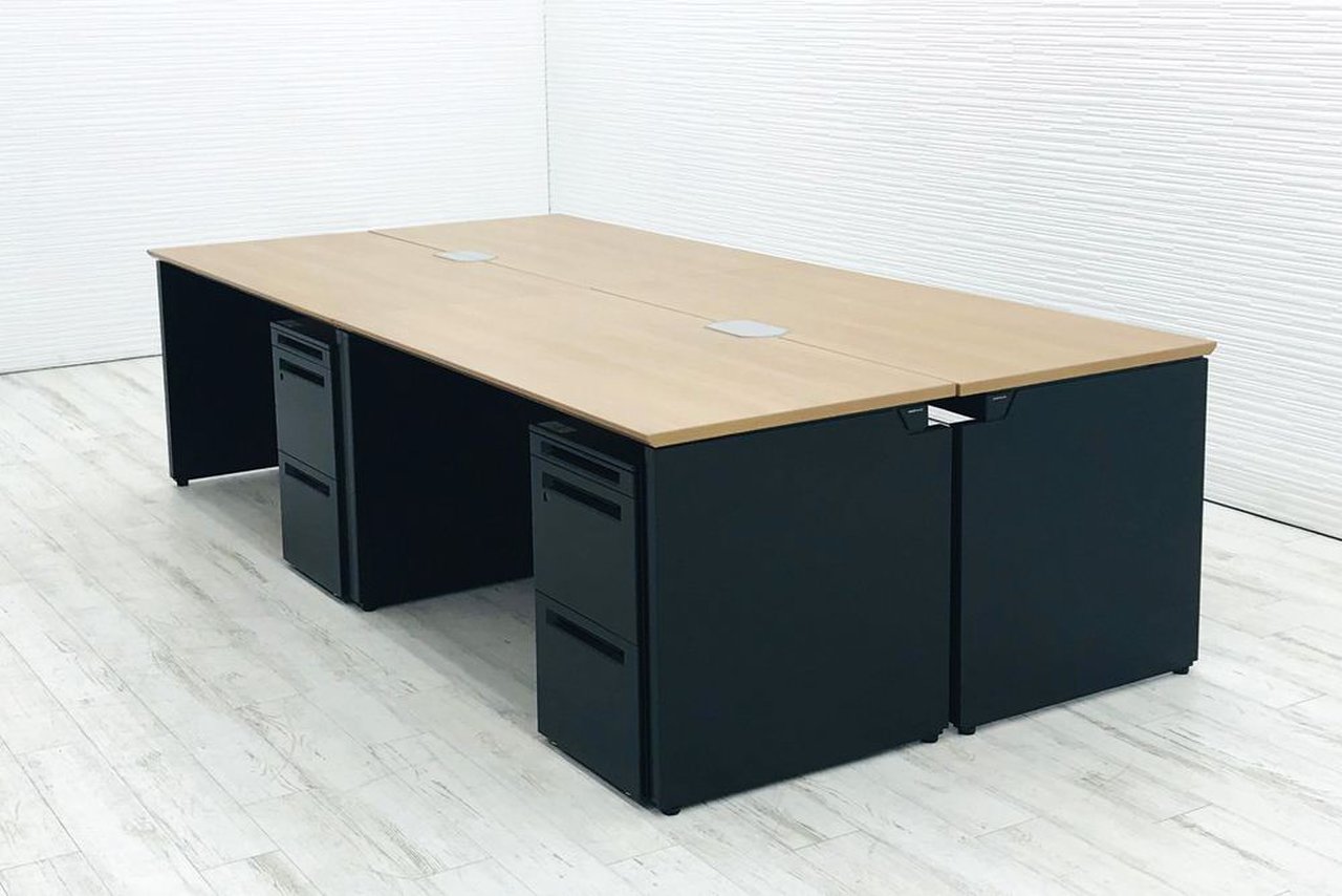 【KS】4人用デスクワゴンセット!トレンドの濃い木目柄のデスク!サイズも幅が広くて使いやすい!■オカムラ■プロユニット- 茨城南店