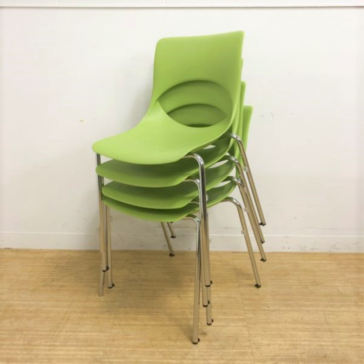 【デザイナーズ家具】オカムラ ルッツ スタッキングチェア ライムグリーン おしゃれイス【Martin Ballendat氏】- 名古屋千種店