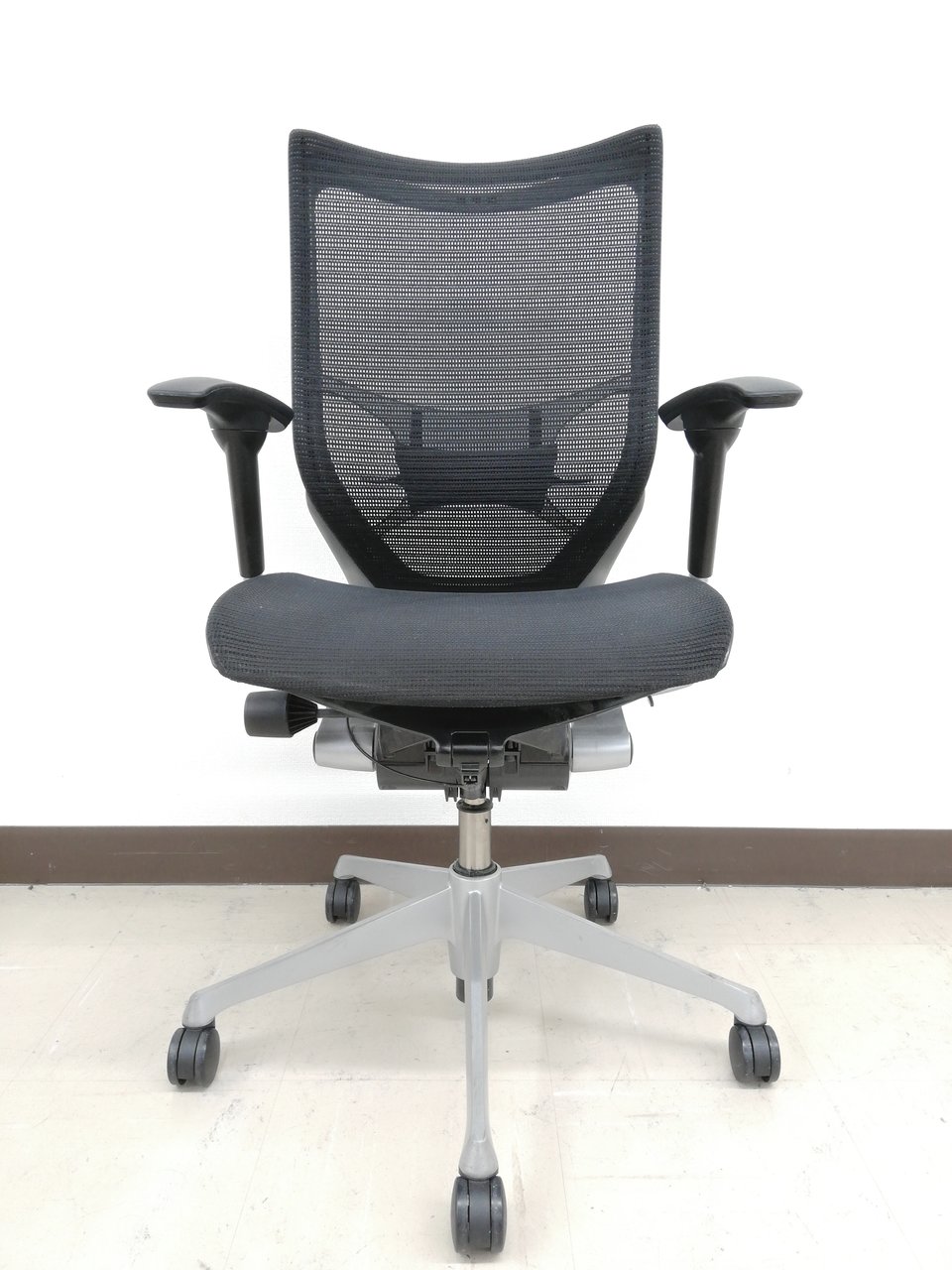 【座面メッシュ】スタンダードメッシュ ブラックフレーム アームレスト付き ヘッド付きオススメ(おすすめ) 大人気 ・Okamura/オカムラ ・Baron/バロン ※横浜本店撮影画像※